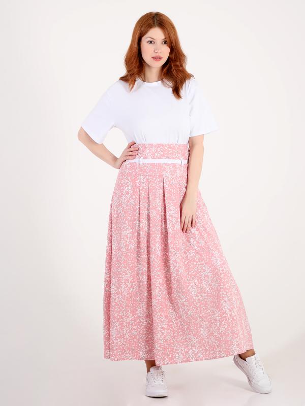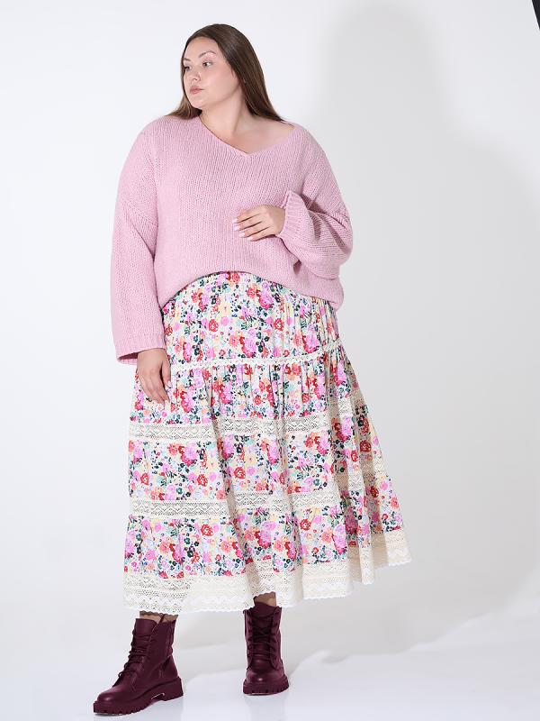 Представляем вам нашу уникальную летнюю юбку больших размеров! Эта длинная юбка выполнена из высококачественной вискозы и полиэстера. Юбка на кокетке нежного розового цвета с мелким цветочным принтом. Она идеально подходит для женщин с пышными формами, обеспечивая комфорт и элегантность одновременно. Благодаря своей длине и свободному крою, эта юбка позволяет скрыть недостатки фигуры и подчеркнуть достоинства. Цветочный принт добавляет свежести и женственности образу, делая его идеальным для летних прогулок, семейных праздников и повседневных выходов. Наша юбка изготовлена с учётом особенностей больших размеров, поэтому она обеспечивает идеальную п