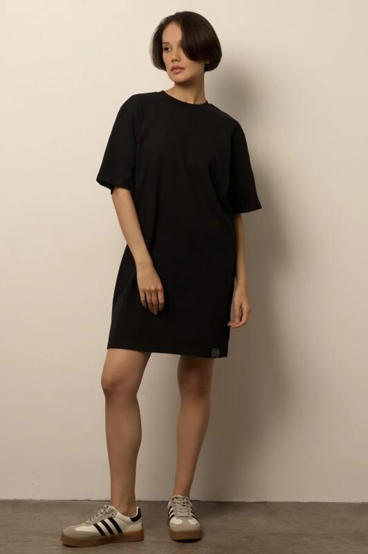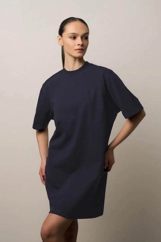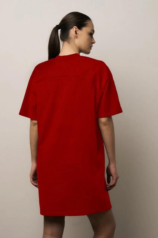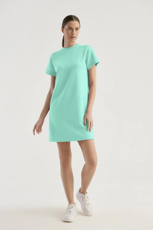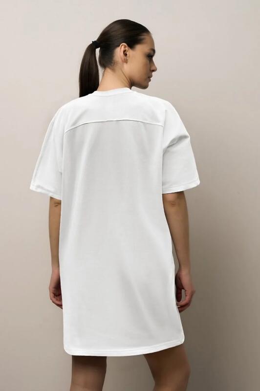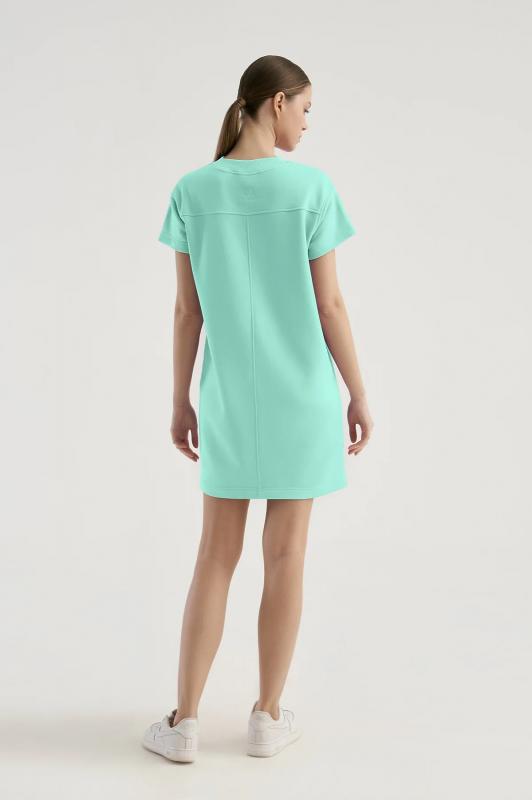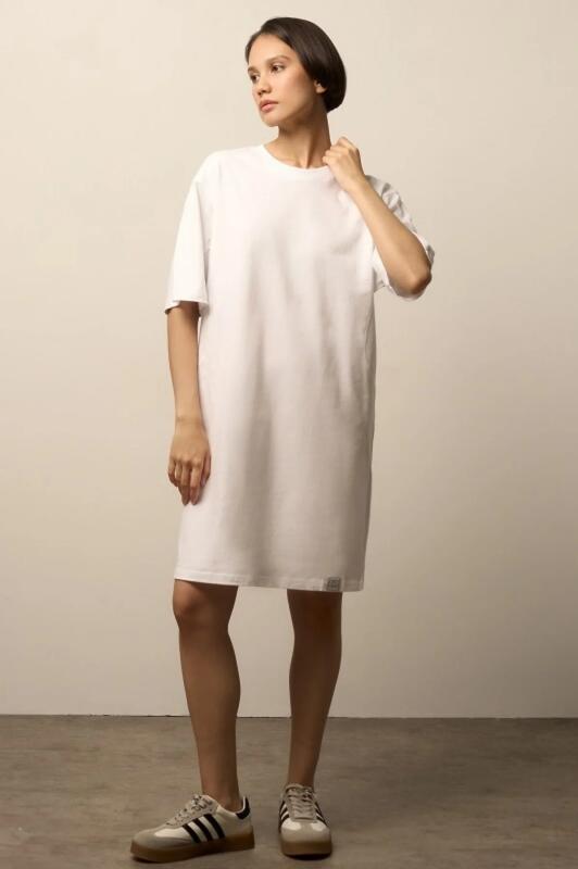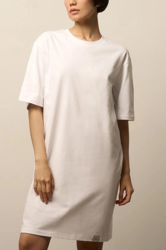Платье прямого свободного кроя. Декорировано вышитым логотипом бренда. Пошито из облегченного футера с петельчатой изнанкой - тактильно приятного, мягкого и эластичного. Комфортная посадка, актуальный крой - идеальное решение для весенне-летнего сезона.