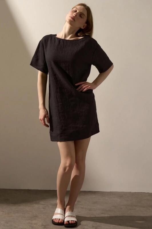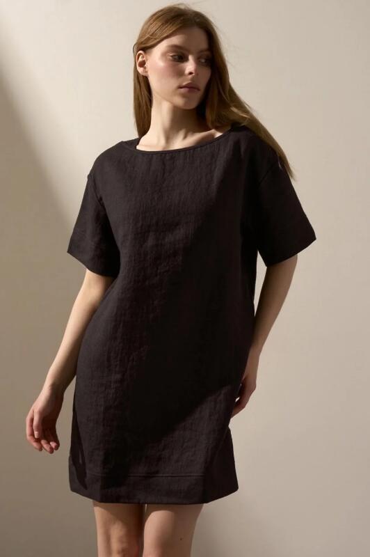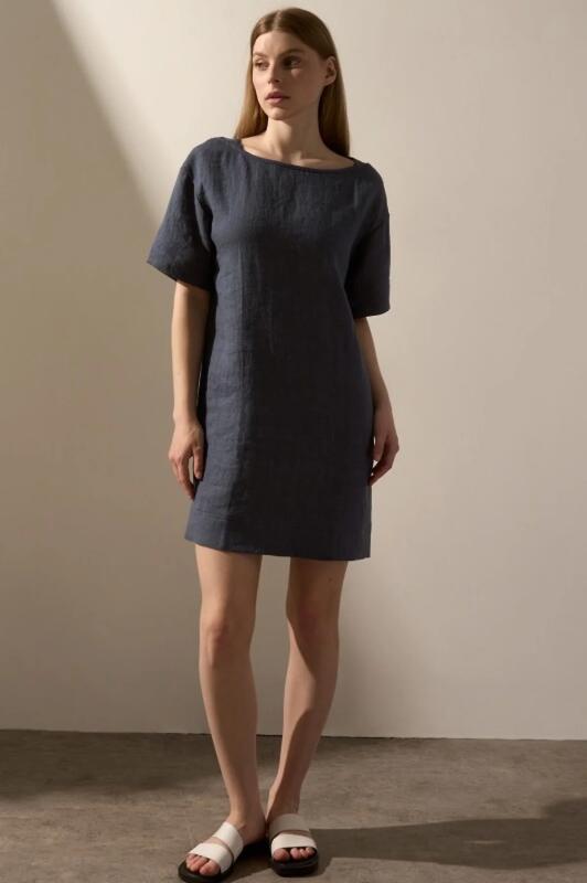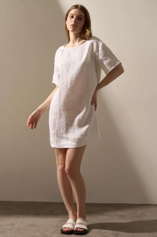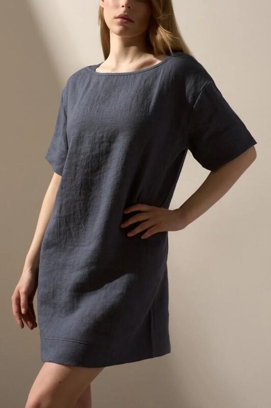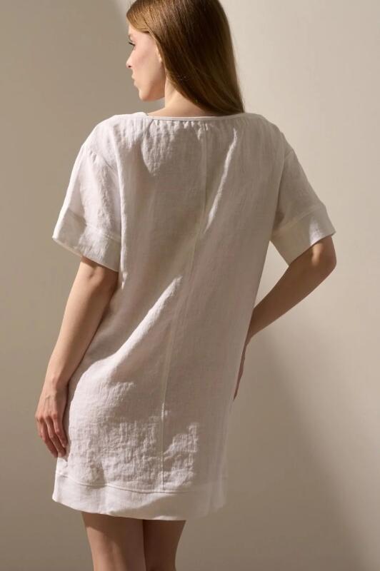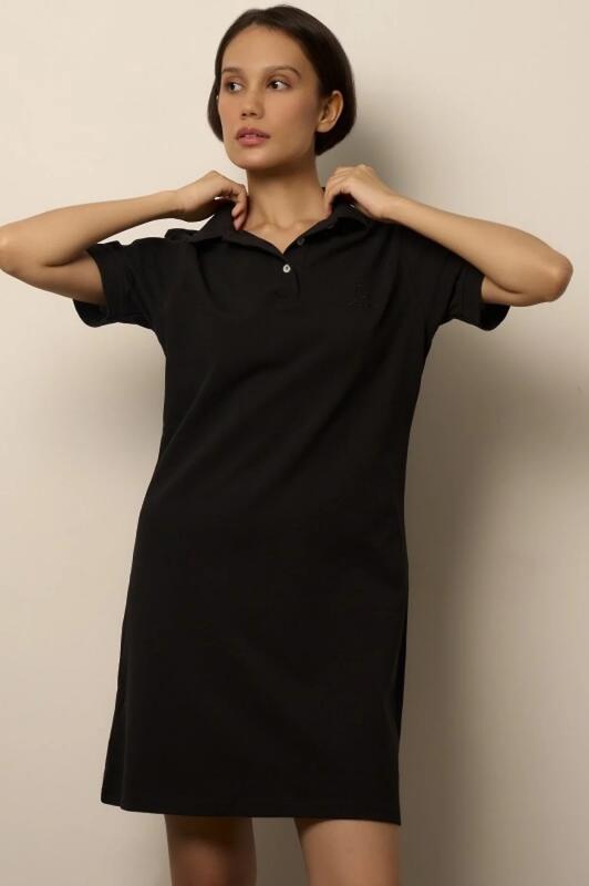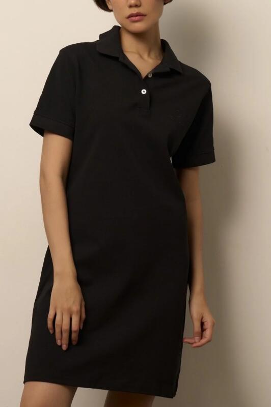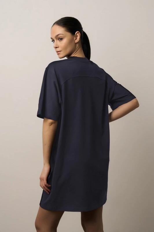 Платье прямого свободного кроя. Декорировано вышитым логотипом бренда. Пошито из облегченного футера с петельчатой изнанкой - тактильно приятного, мягкого и эластичного. Комфортная посадка, актуальный крой - идеальное решение для весенне-летнего сезона.