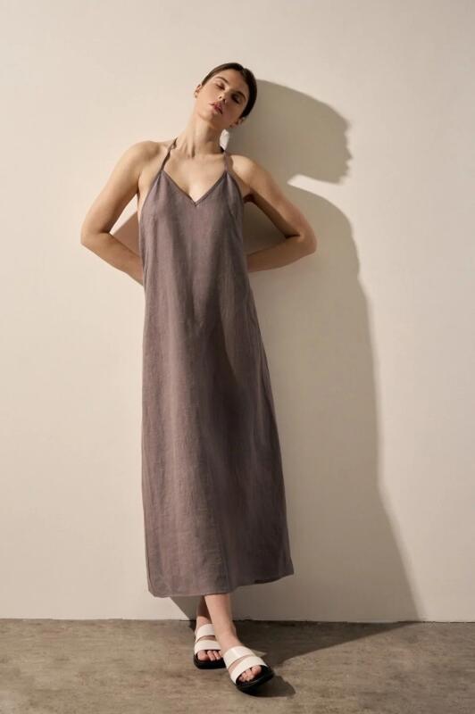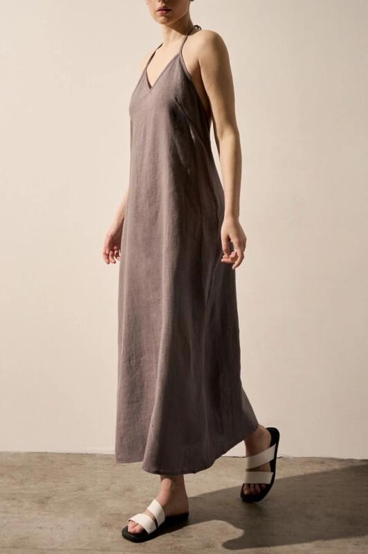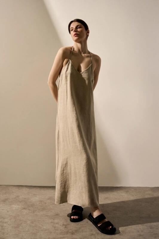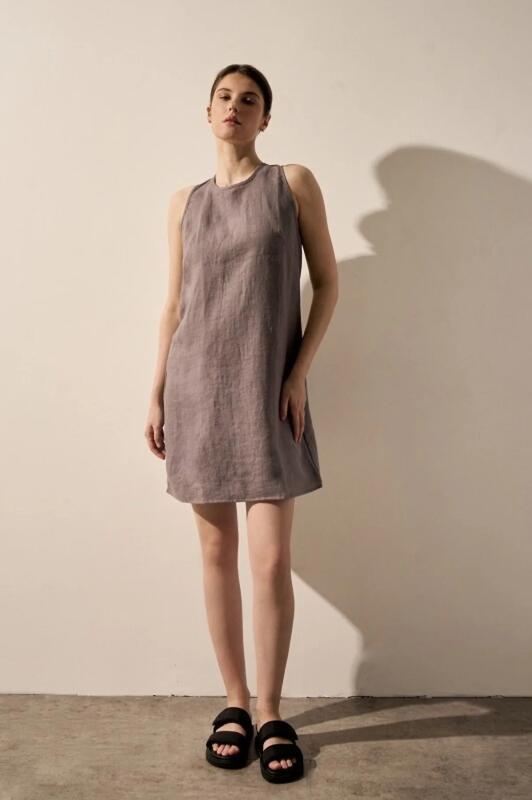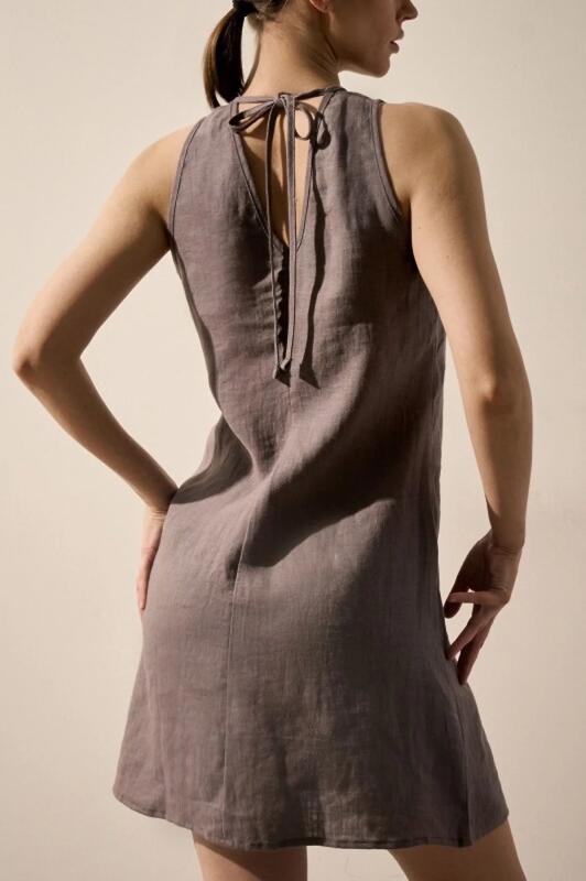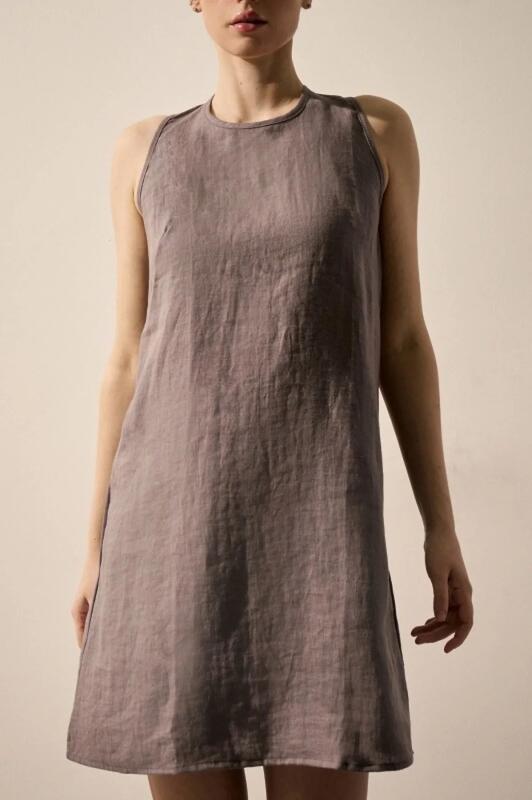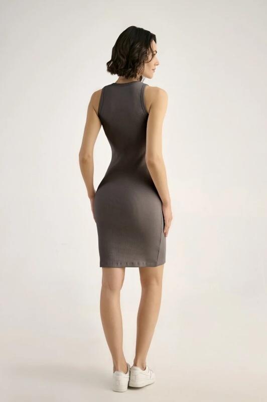Платье из кашкорсе, облегающего силуэта, с окантовкой пройм и горловины из основной ткани.