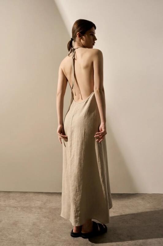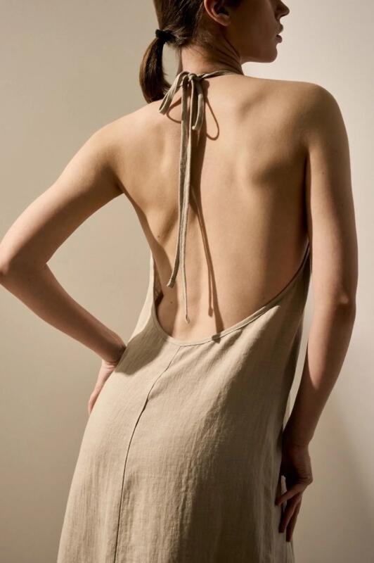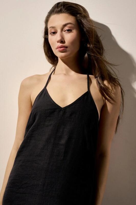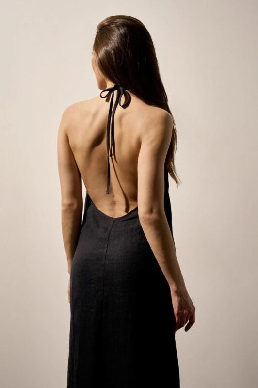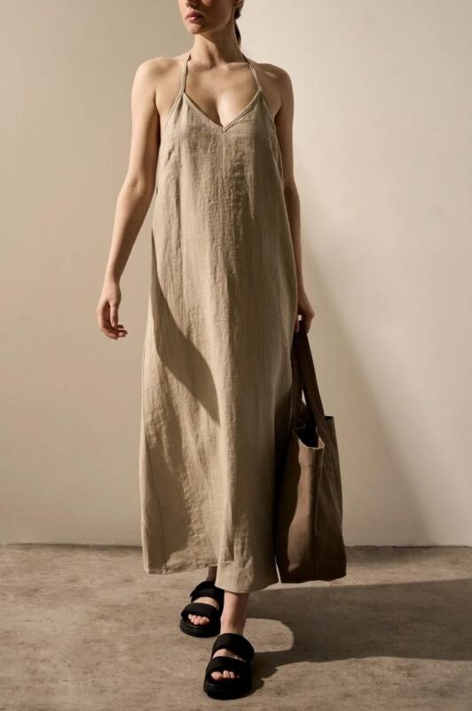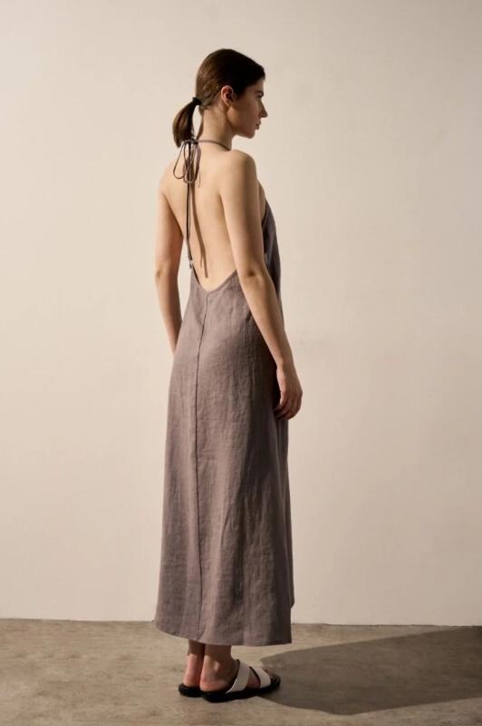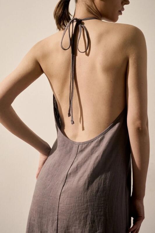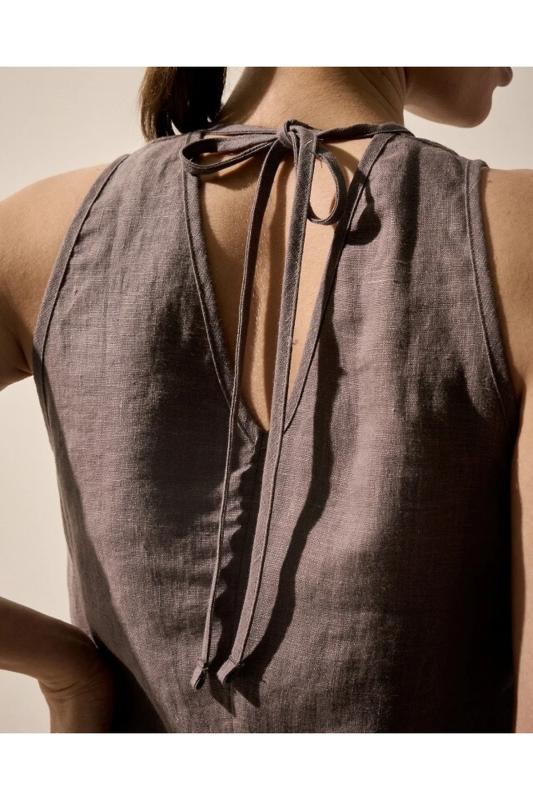 Платье из кашкорсе, облегающего силуэта, с окантовкой пройм и горловины из основной ткани.