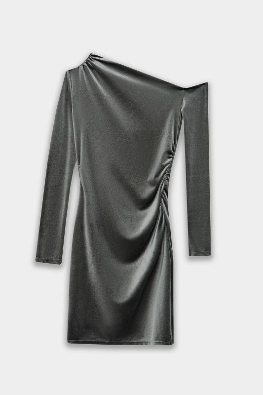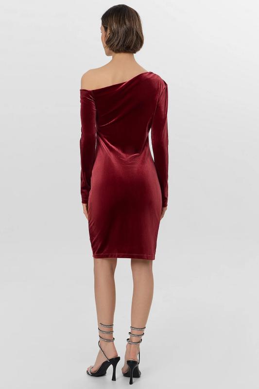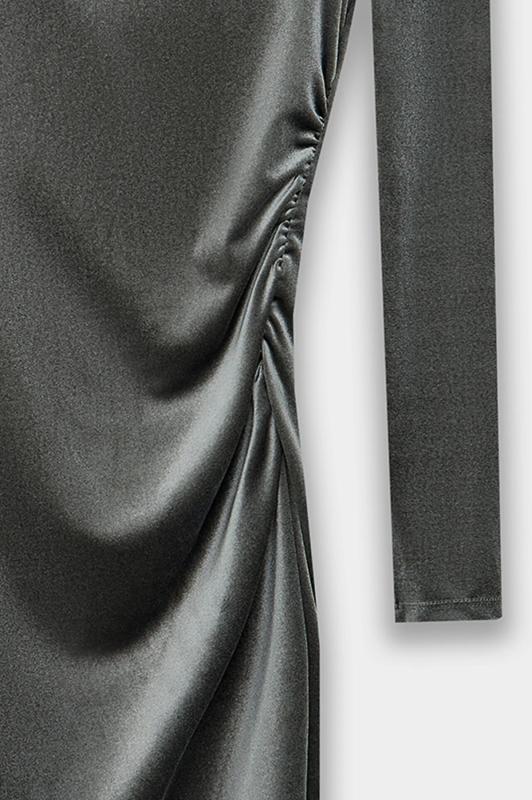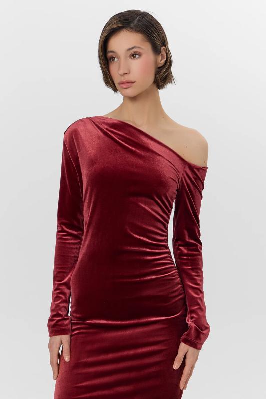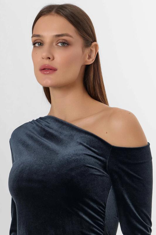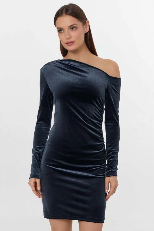 Платье из лимитированной коллекции Mark Formelle x Ольга Бузова прилегающего силуэта с асимметричным вырезом на одно плечо подчеркивает фигуру, добавляя образу дерзкой элегантности. Асимметрия подчеркнута и в рукавах: один плотно облегает руку, а второй спущен с плеча, создавая ощущение легкой небрежности. Драпировка по горловине и на передней детали, зафиксированная силиконовой лентой, добавляет платью динамики и объема. Платье выполнено из велюра с добавлением спандекса, что обеспечивает идеальное облегание и мягкость ткани. Состав из полиэстера и спандекса гарантирует сохранение формы и комфорт при движении. Это платье станет центром внимания на любом мероприятии — от светского приема до особенного свидания. Коллаборация с Ольгой Бузовой привносит в дизайн яркую индивидуальность и современное прочтение вечернего образа.