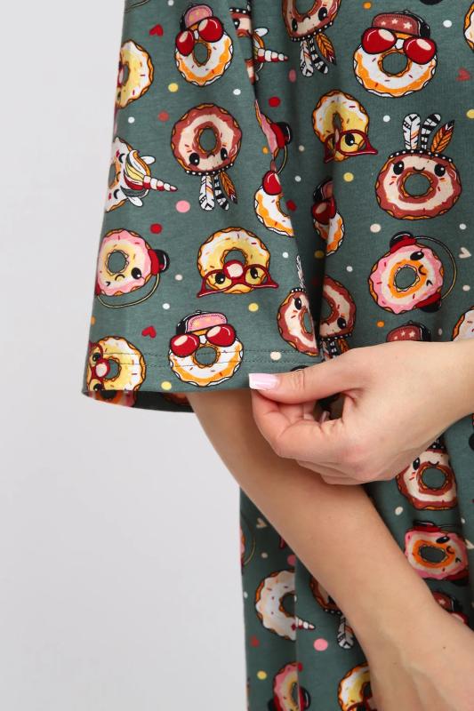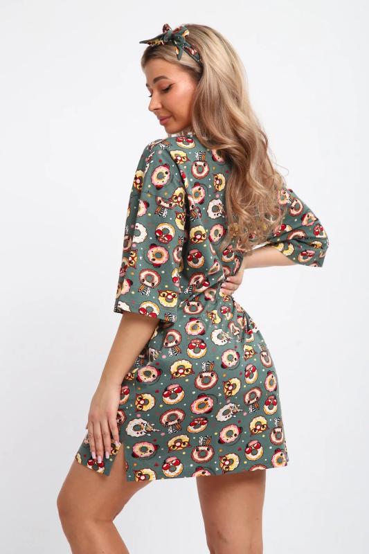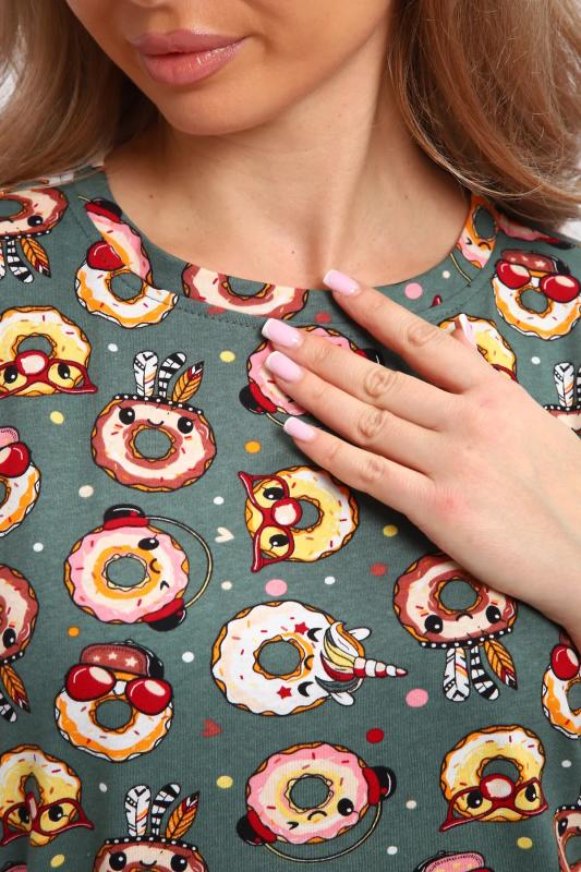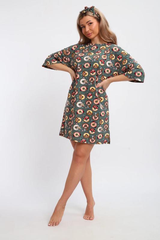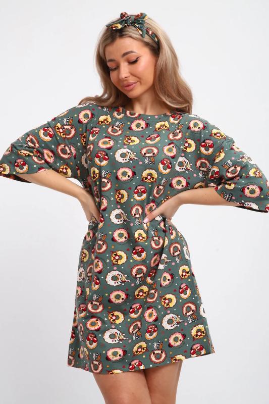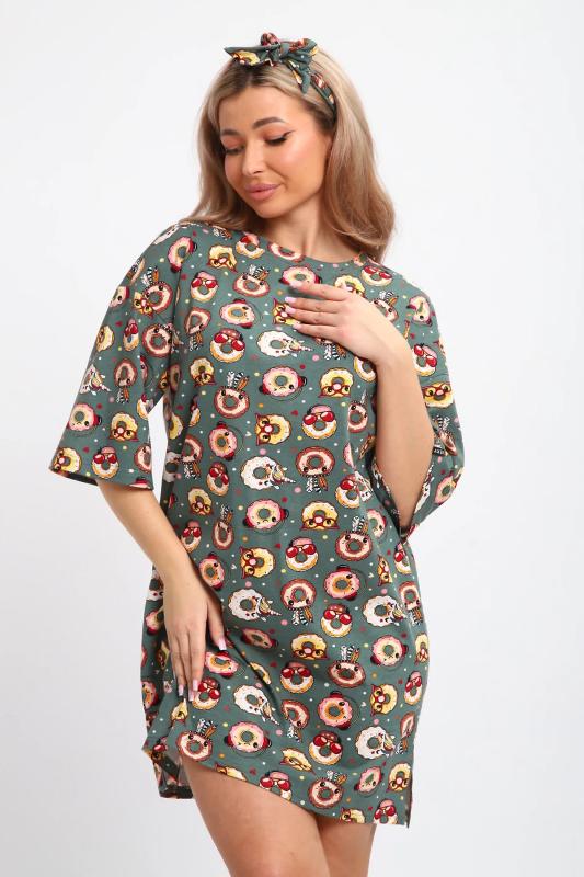 Эта нежная новогодняя туника с бантиком в подарок от JEXY создана специально для женщин, которые ценят комфорт и стиль. Эта легкая молодежная туника-футболка изготовлена из мягкого трикотажа (кулирка, хлопок 100%), обеспечивая ощущение естественной свежести на протяжении всего дня. Женское платье больших размеров это идеальный выбор для женщин, девушек или подростков, которые хотят выглядеть модно и стильно без усилий. Благодаря свободному покрою в стиле оверсайз и удлиненным рукавами, она придаст вашему образу непринужденность и легкость. Это классическое трикотажное платье миди подойдет как для дома, так и для отдыха на пляже. Женское платье-футболка особенно подходит для беременных женщин, так как его свободный крой и мягкий материал обеспечивают максимальный комфорт во время всего периода беременности. А для кормящих мамочек эта ночная сорочка станет незаменимой благодаря функциональному дизайну, который позволяет легко и удобно кормить ребенка. Красочная принт с пончиками, придающая особый шарм этой под