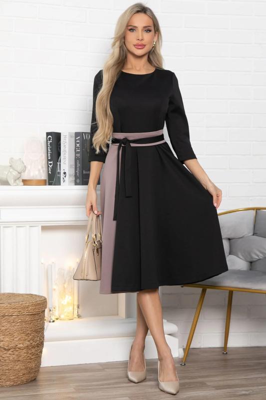 Состав : 65% полиэстер, 30% вискоза, 5% эластан Материал : трикотаж Цвет : черный Принт : отсутствует Длина : миди Силуэт : приталенный Карманы : отсутствуют Подкладка : отсутствует Вид застежки : молния Декоративные элементы : отсутствуют Длина : 44 - 102 см,, 46 - 102 см,, 48 - 104 см,, 50 - 104 см,, 52 - 104 см,, 54 - 104 см Обхват груди : 44 - 88, 46 - 92, 48 - 96, 50 - 100, 52 - 104, 54 - 108 Обхват бёдер : 44 - 134, 46 - 134, 48 - 138, 50 - 142, 52 - 146, 54 - 150 Обхват талии : 44 - 74, 46 - 78, 48 - 82, 50 - 86, 52 - 90, 54 - 94 Дополнительные параметры размеров : 44 - длина рукава Стильное платье с рукавом 3-4 и округлым вырезом горловины. Модель выполнена с отрезной линией по талии и расклешенной юбкой, что обеспечивает комфортную посадку и женственный силуэт. Одним из ярких акцентов является розовый клин, придающий образу свежести и нежности. В комплект входит широкий фигурный пояс розового цвета с черным — идеально подчеркнет талию и добавит изюминку образу. Застежка — молния на спине, обеспечива
