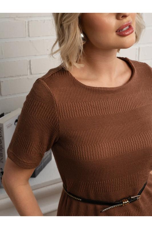 Состав : 65% полиэстер, 30% вискоза, 5% эластан Материал : трикотаж Цвет : коричневый Принт : отсутствует Длина : миди Силуэт : свободный Карманы : отсутствуют Подкладка : отсутствует Вид застежки : без застёжки Декоративные элементы : ремень в комплекте Длина : 44 - 90 см,, 46 - 91 см,, 48 - 92 см,, 50 - 94 см,, 52 - 94 см,, 54 - 94 см Обхват груди : 44 - 92, 46 - 96, 48 - 100, 50 - 104, 52 - 108, 54 - 112 Обхват бёдер : 44 - 96, 46 - 102, 48 - 108, 50 - 110, 52 - 112, 54 - 120 Обхват талии : 44 - 94, 46 - 98, 48 - 104, 50 - 106, 52 - 110, 54 - 114 Дополнительные параметры размеров : 44 - длина рукава Трикотажное платье, которое сочетает в себе стиль и универсальность. Дополнено узким поясом, чтобы подчеркнуть вашу талию. Оно станет отличным дополнением к вашему гардеробу, позволяя создавать разнообразные образы. Платье прекрасно сочетается с минималистичной бижутерией и лаконичной обувью, что делает его идеальным выбором для прогулок по городу, офисных встреч или вечерних мероприятий. Платье можно носить с