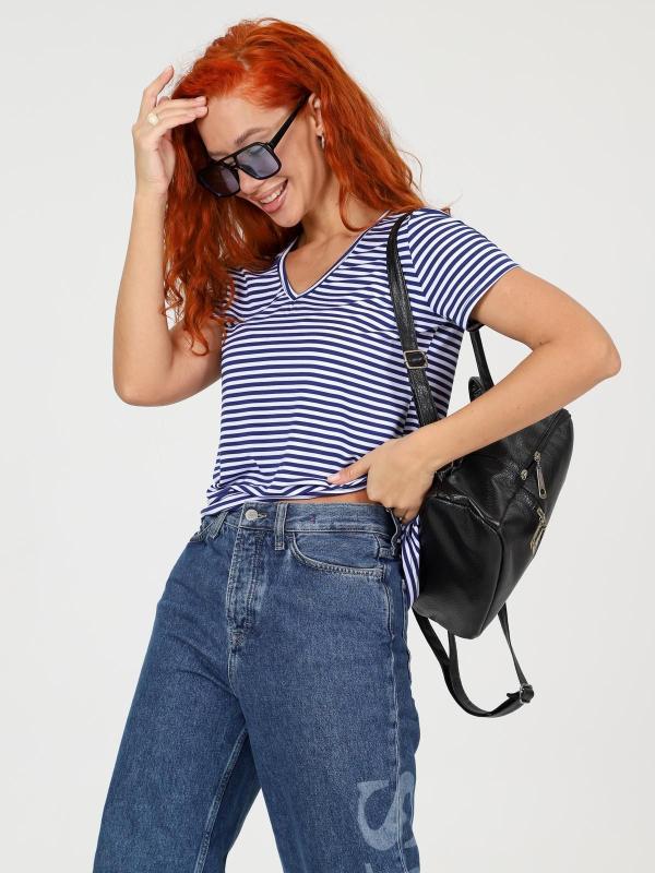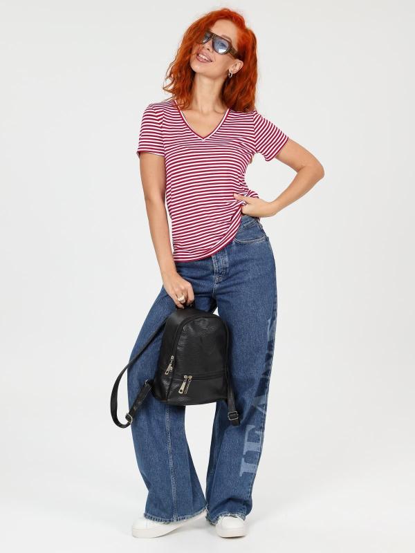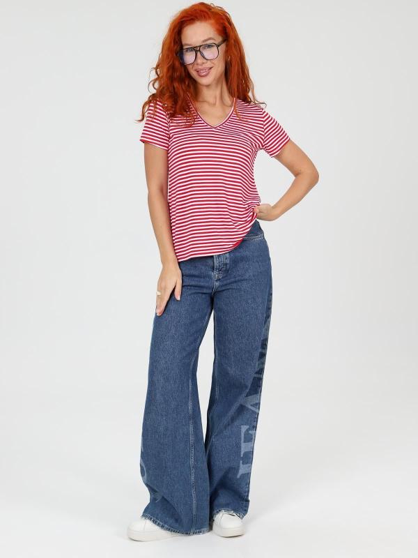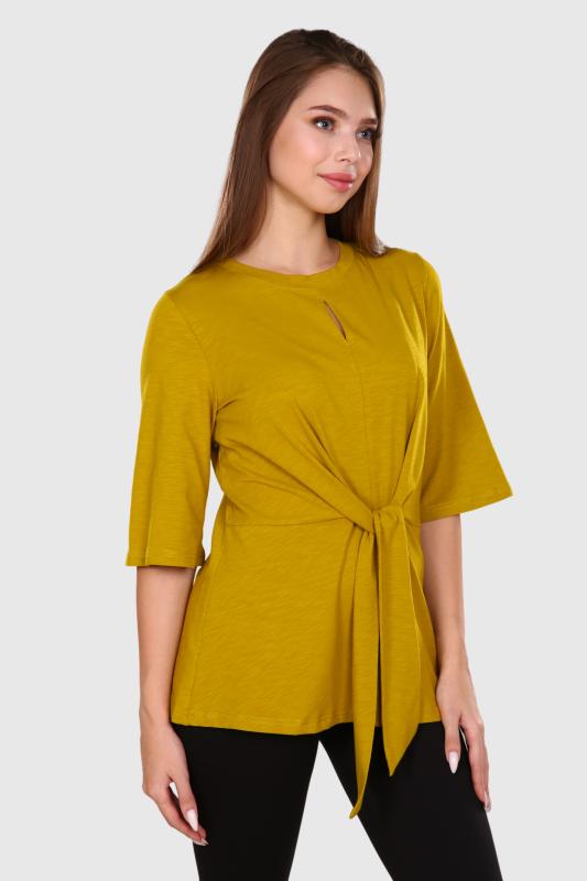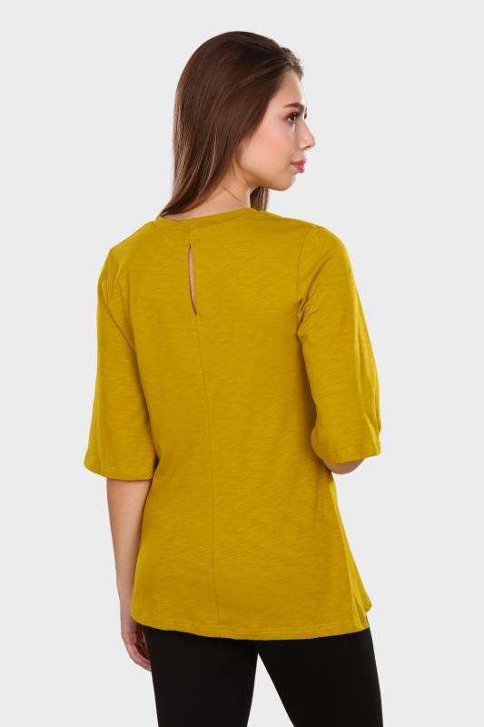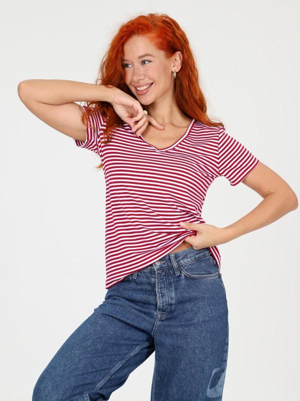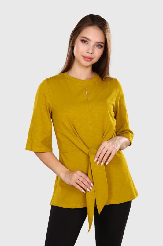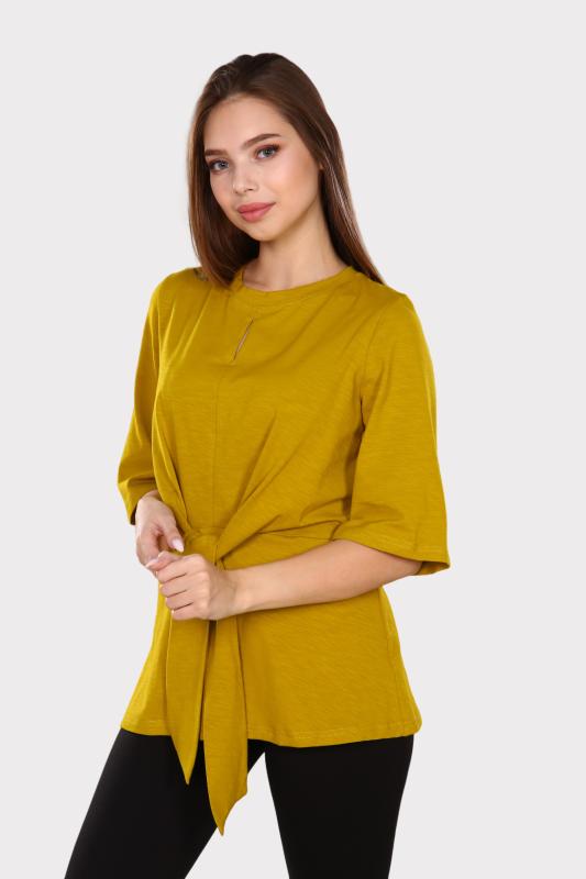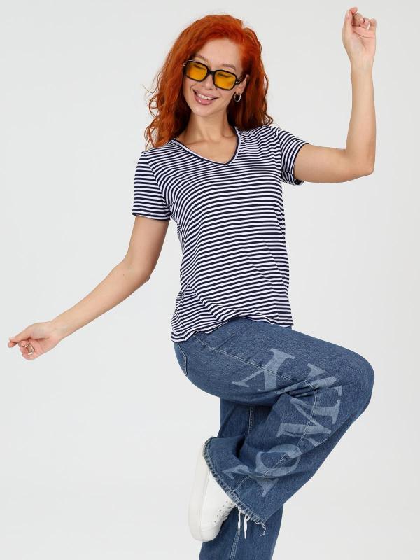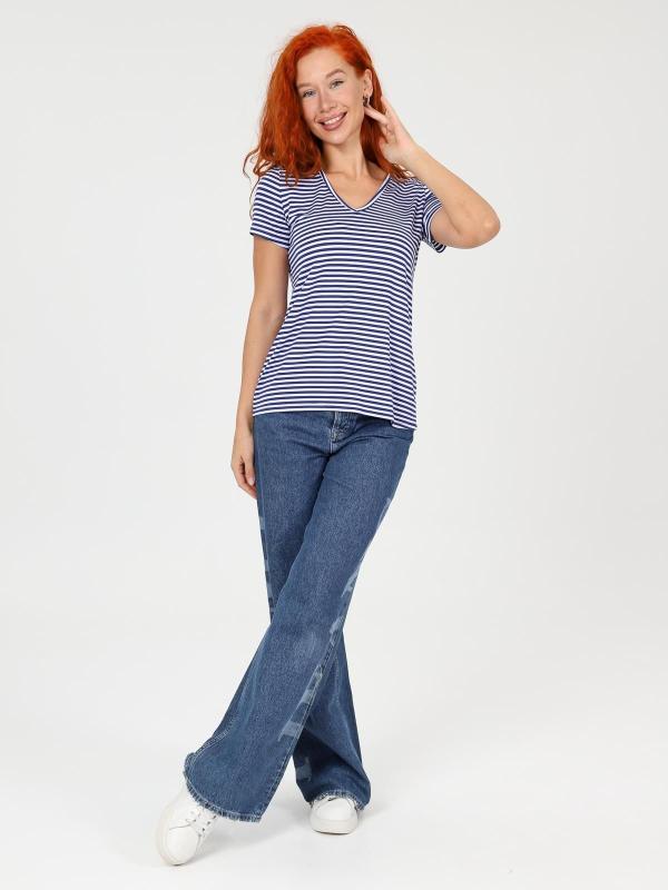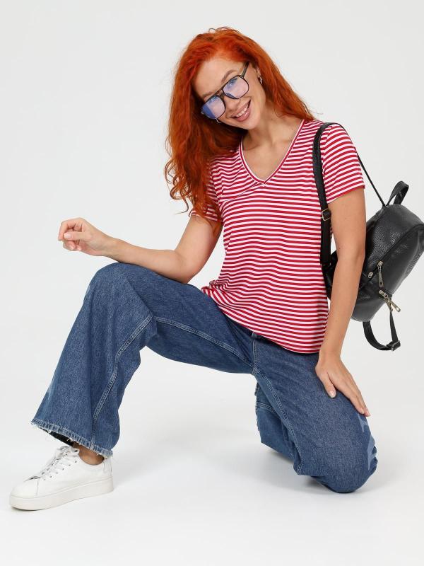 Футболка женская однотонная из кашкорсе-вискозы. Силуэт облегающий, короткий рукав, горловина с круглым вырезом, обработанным бейкой