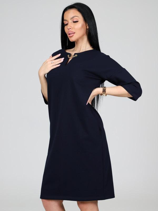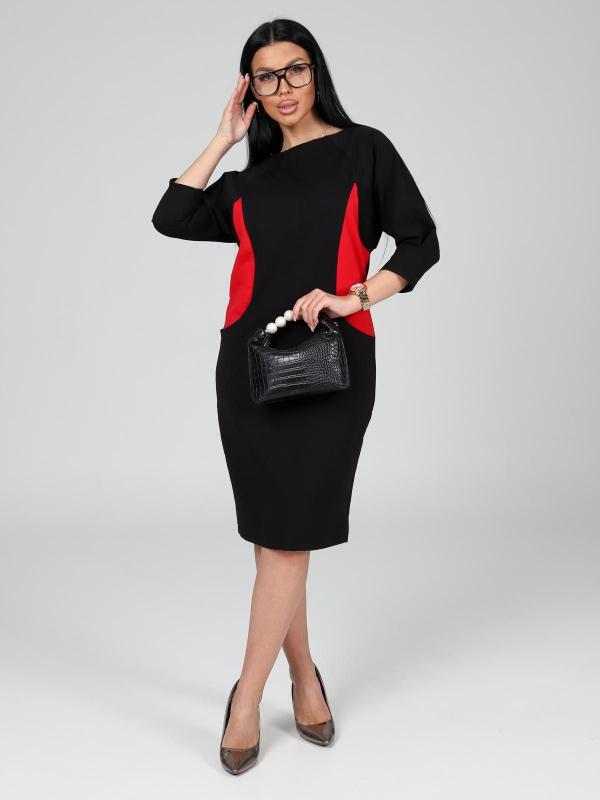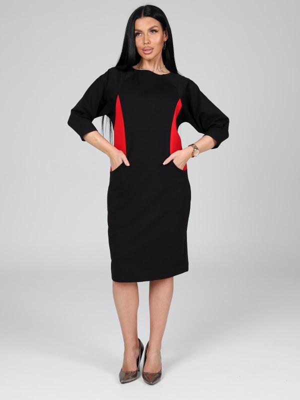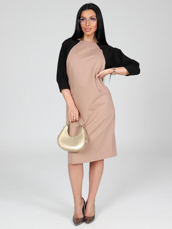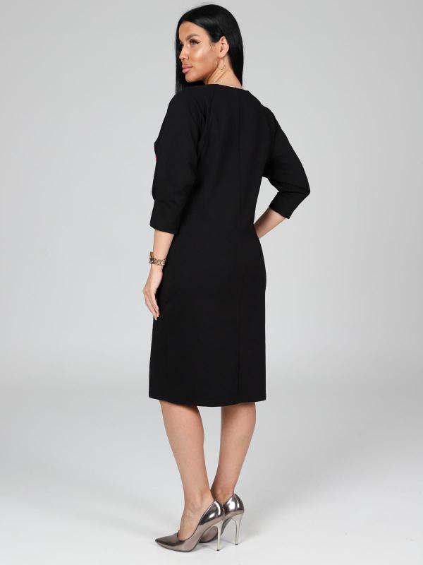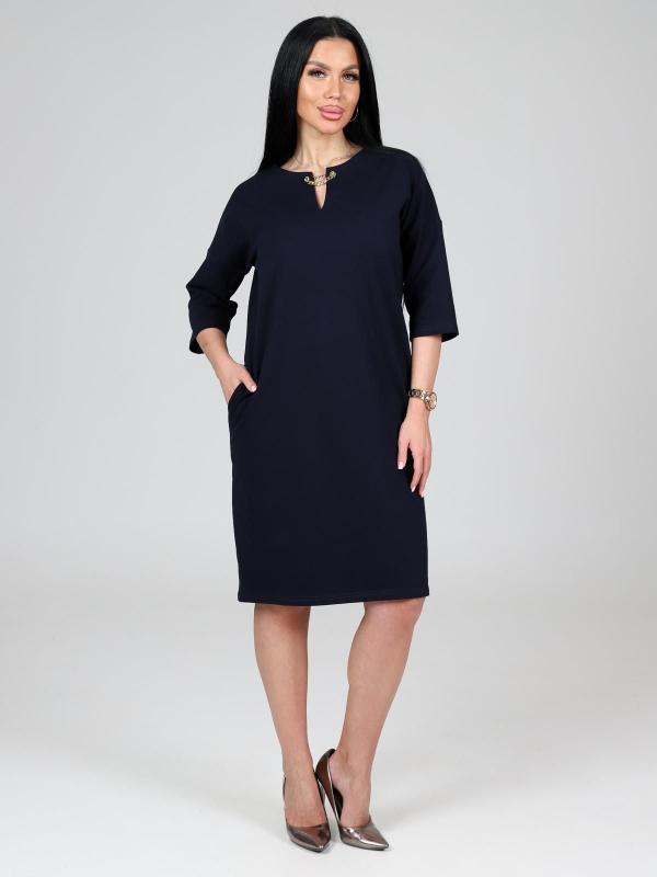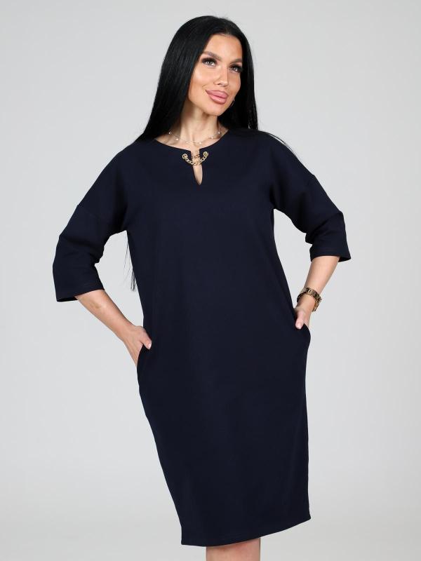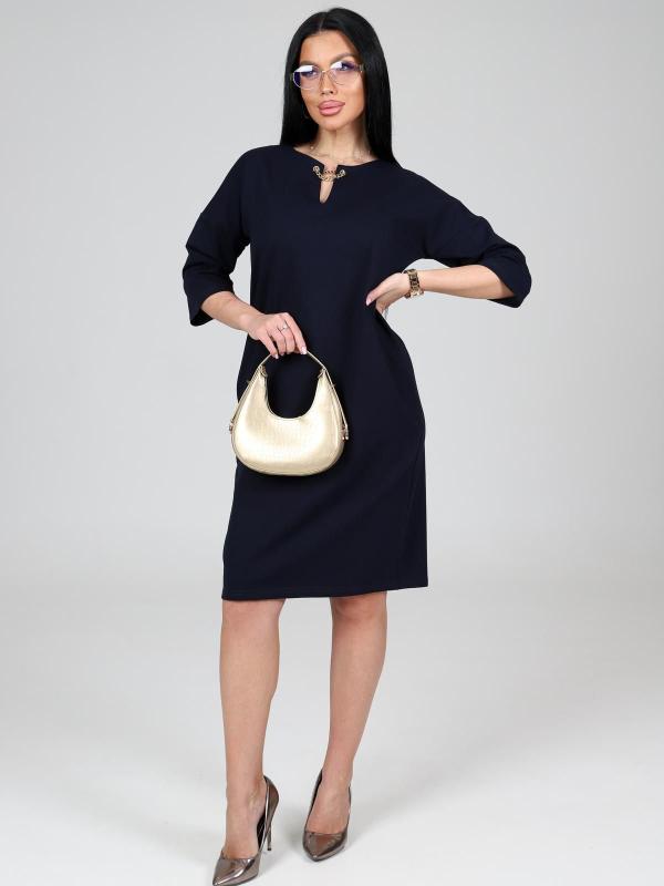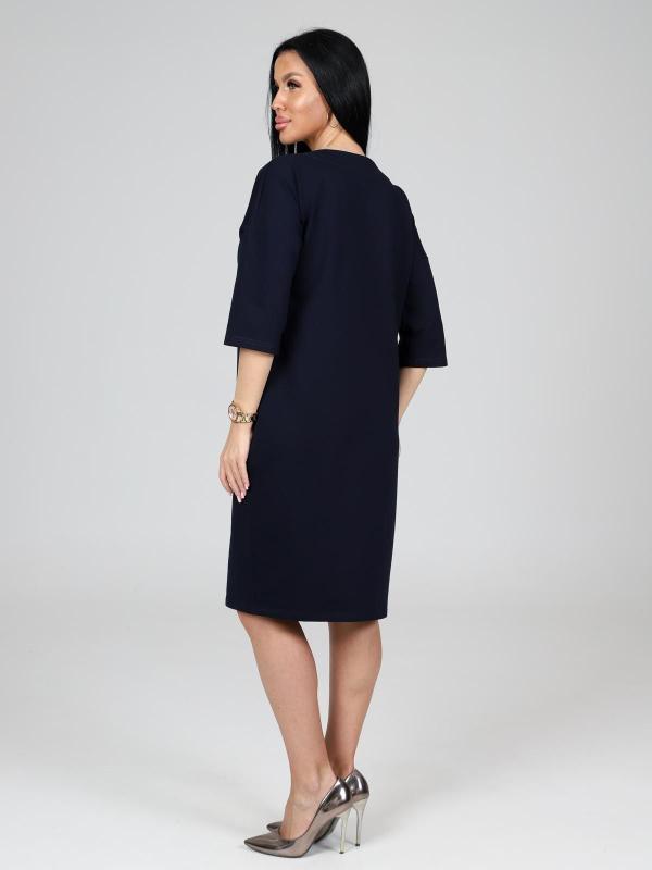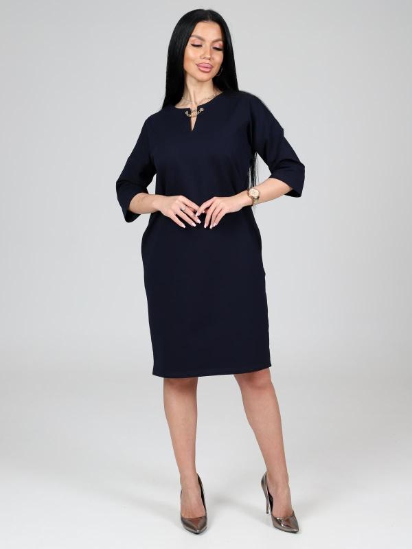 Платье подойдет для торжественного случая, а так же для повседневной носки. Модель прямого силуэта, длиной до колен, с карманами в боковых швах, рукав ¾. Модная, универсальная модель походит всем - стройным женщинам и дамам с формами.