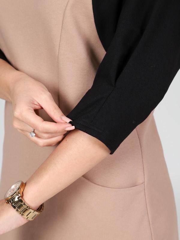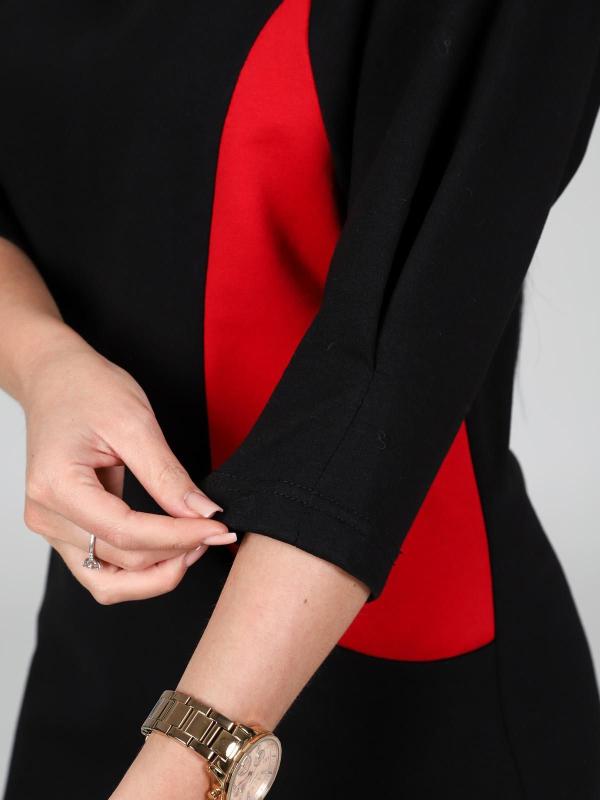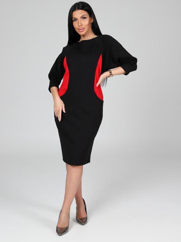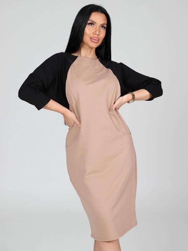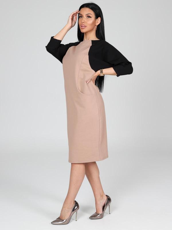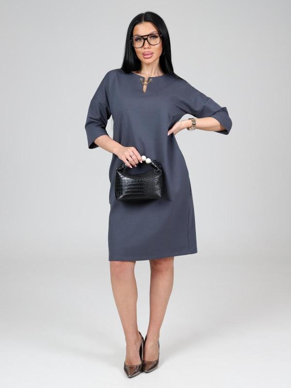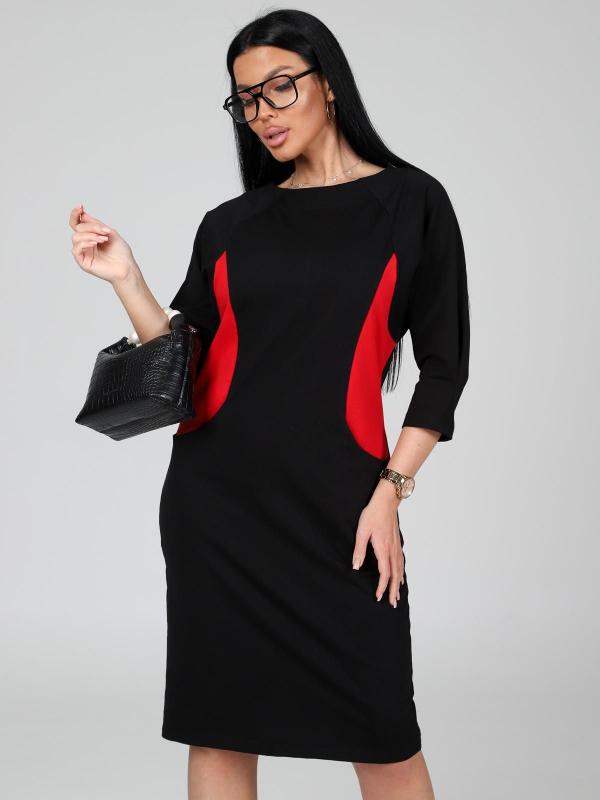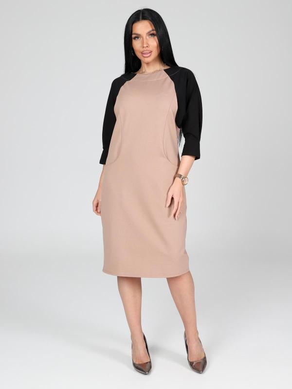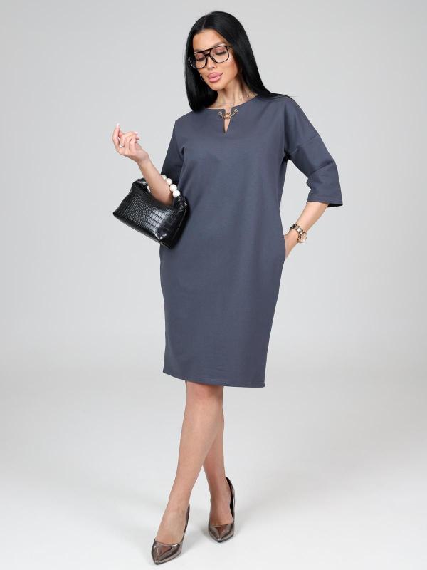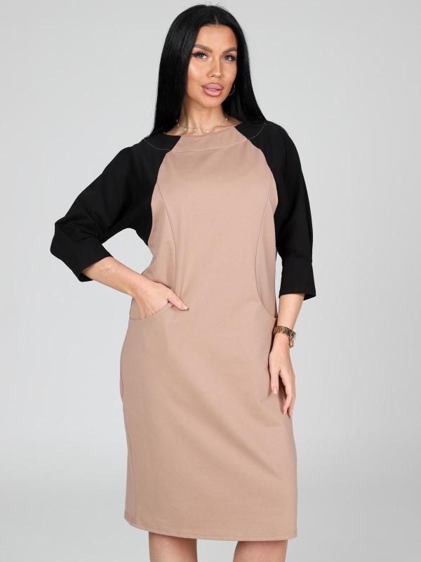 Платье подойдет для торжественного случая, а так же для повседневной носки. Модель прямого силуэта, длиной до колен, с карманами в боковых швах, рукав ¾. Модная, универсальная модель походит всем - стройным женщинам и дамам с формами.