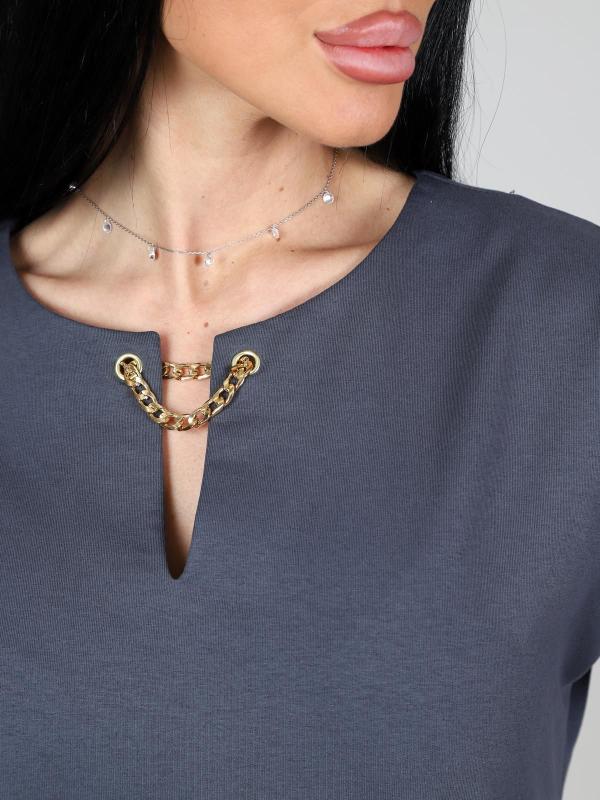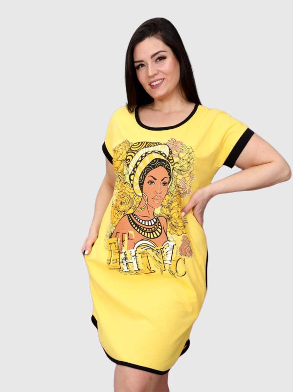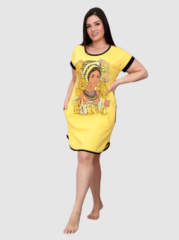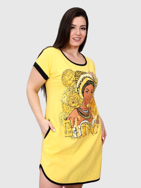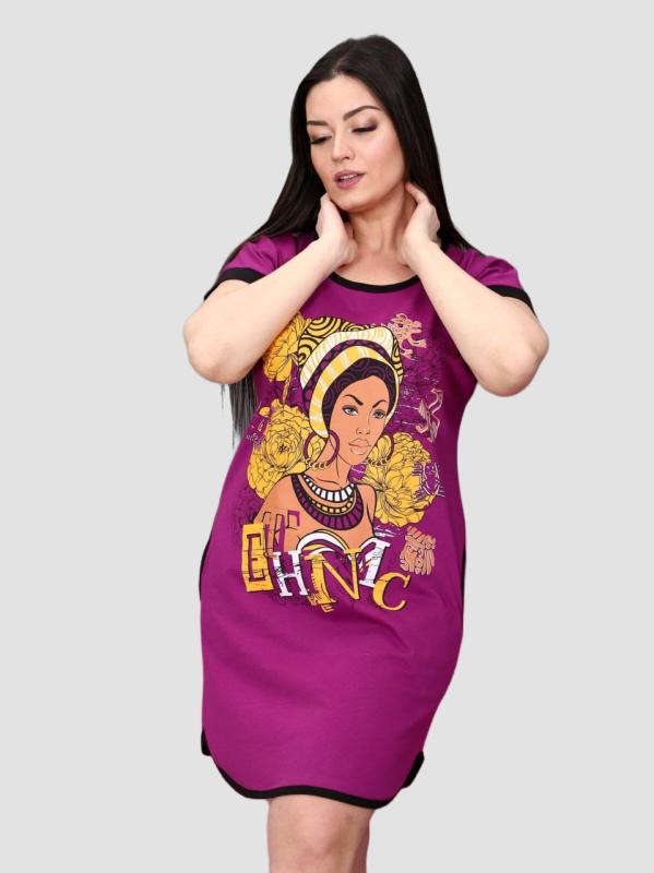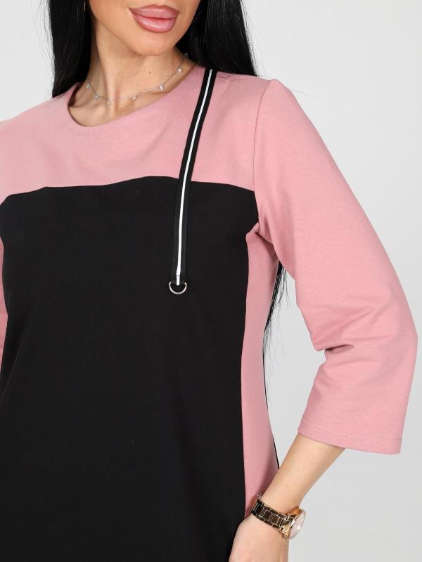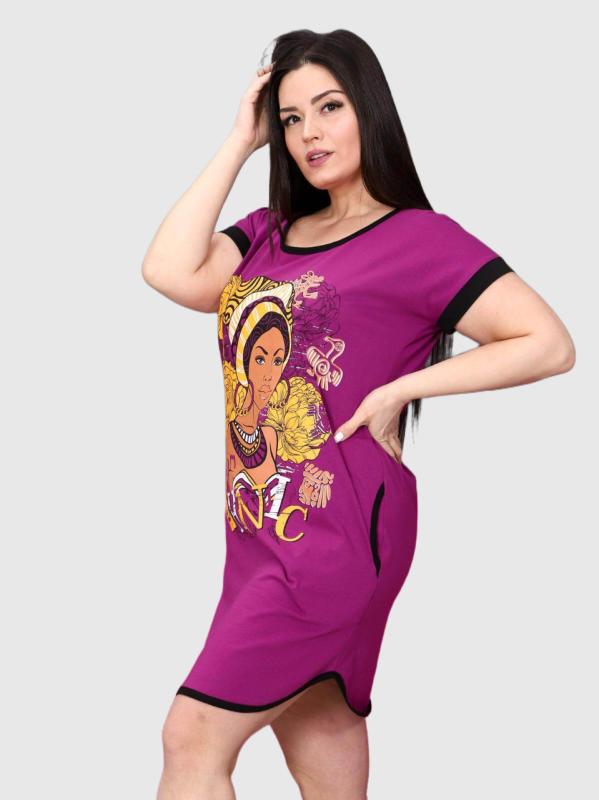 Легкое и нежное женское платье- туника, выполнено из хлопкового трикотажного полотна. Туника средней длины, прямого покроя с внутренними карманами в боковых швах. Рукав 3/4. Фигурный низ изделия и рукава декорированы патами на пуговицах. Туника идеально подойдет для женщины с любым типом фигуры. Отличный вариант на каждый день!
