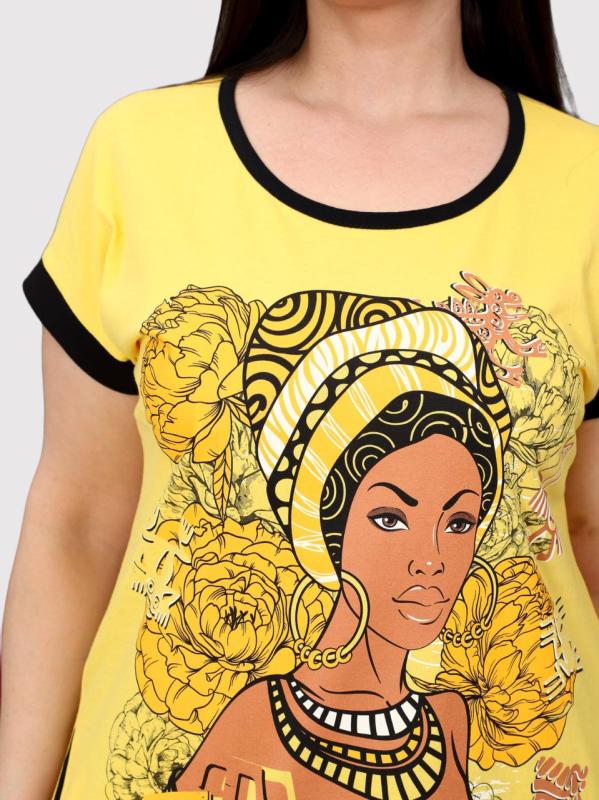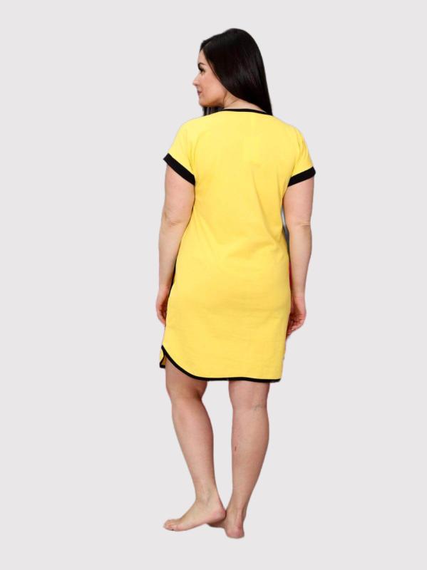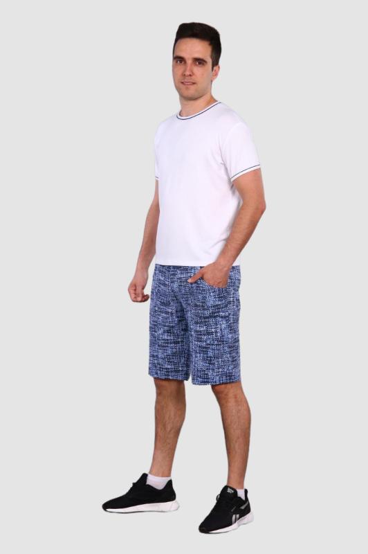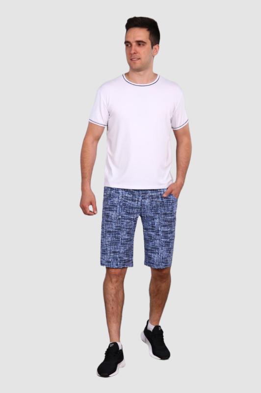 Комплект домашний выполнен из кулирки, состоит из футболки и шорт. Футболка с втачным рукавом, горловиной с круглым вырезом. Спереди нанесён принт. Шорты короткие, с притачным поясом, посередине имитация застежки на пуговицу