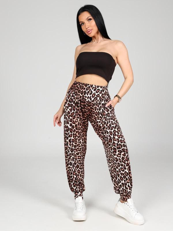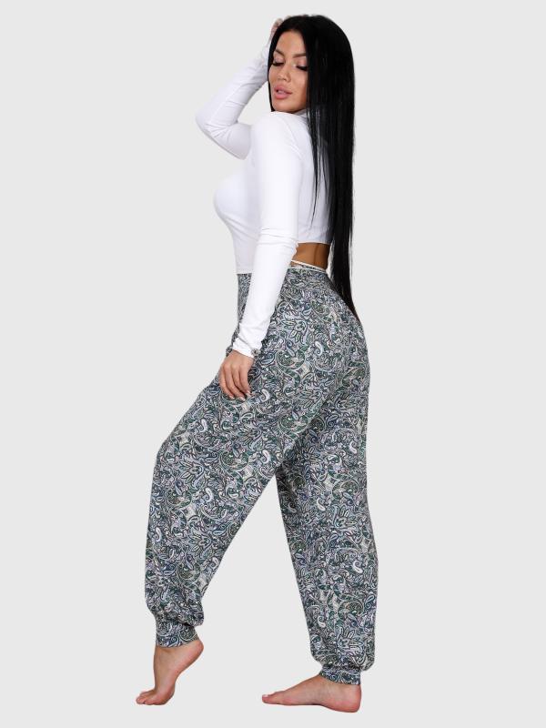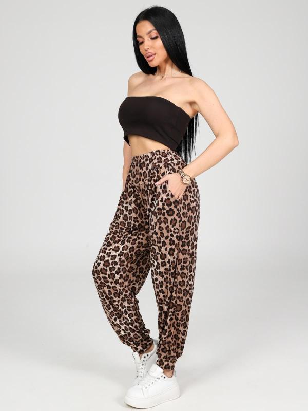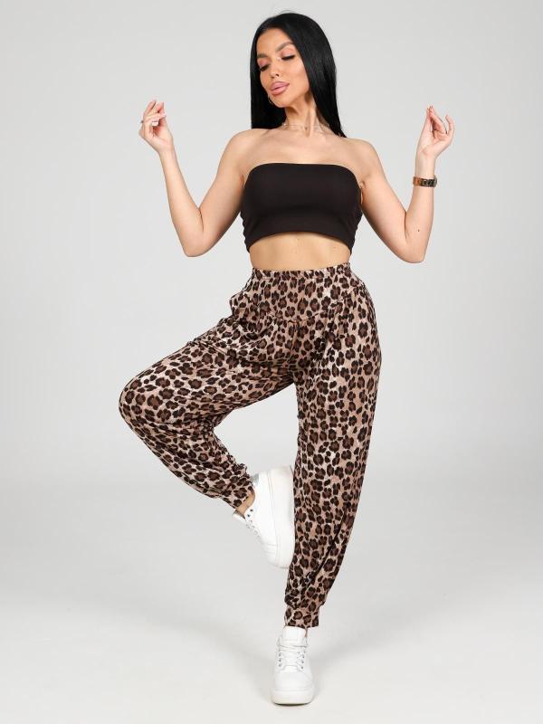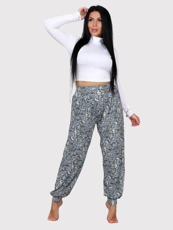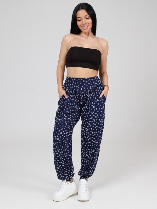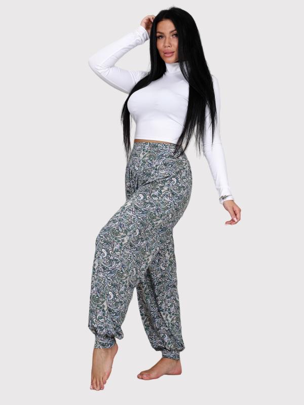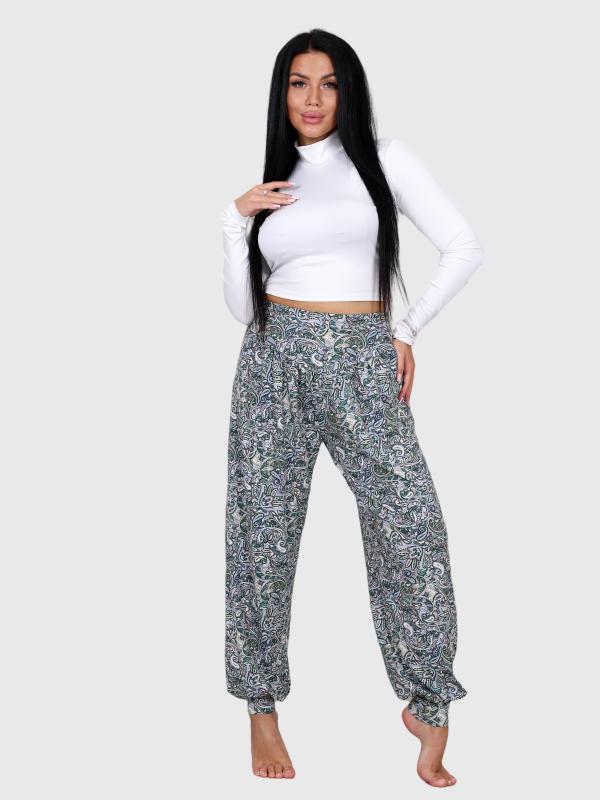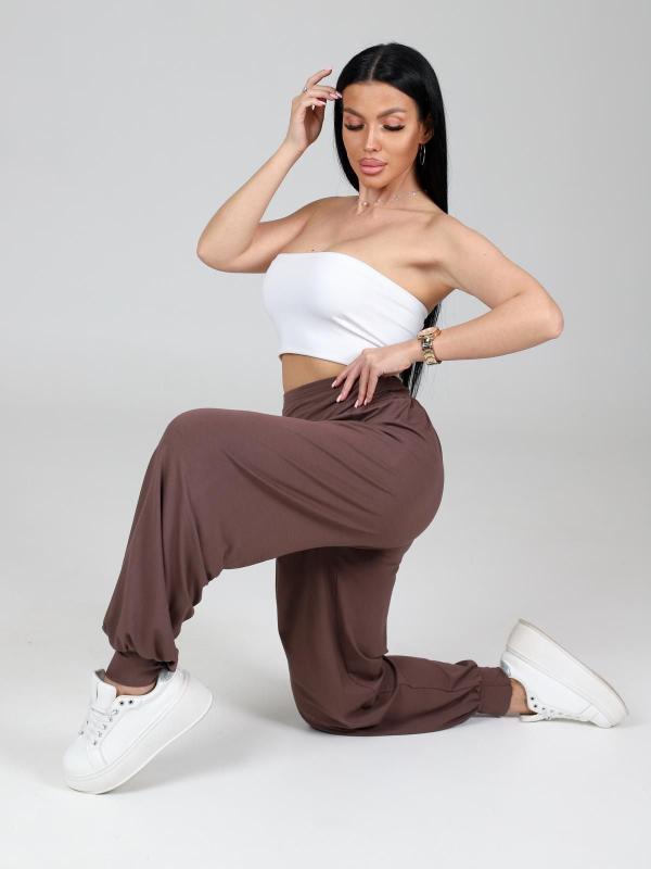 Женские брюки-шаровары выполнены из трикотажного полотна "