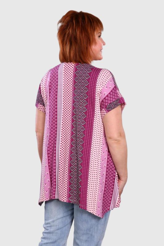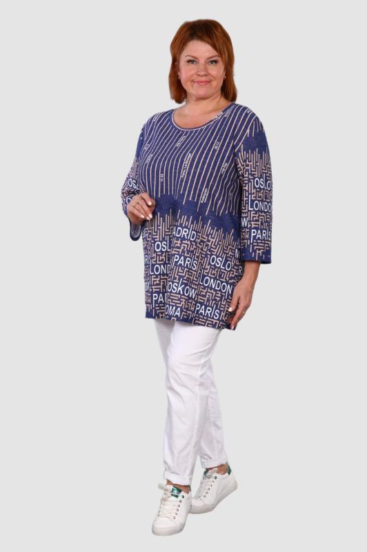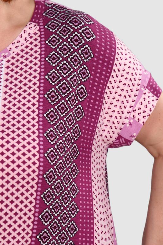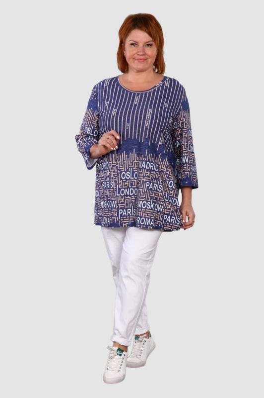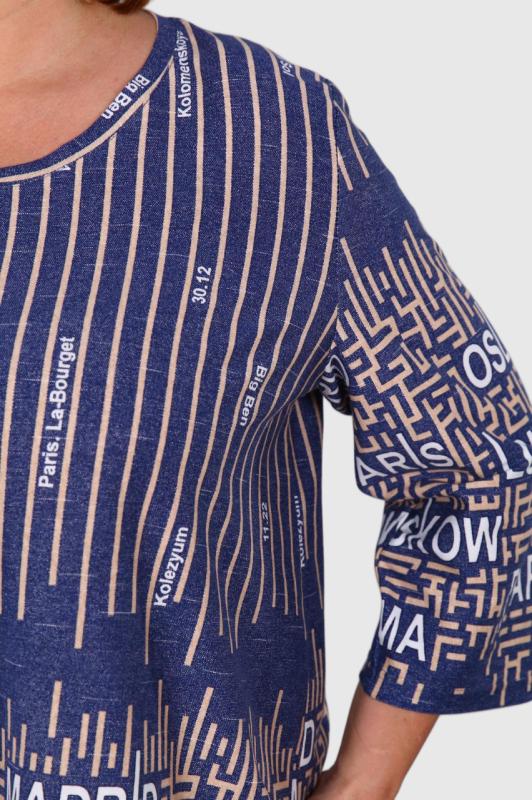 Туника выполнена из 100% хлопка высокой плотности. Туника без карманов, горловина обработана обтачкой из основной ткани. На груди и на одном рукаве модный принт, который придает изюминку изделию. По бокам небольшие разрезы.