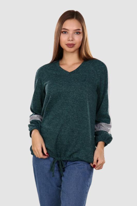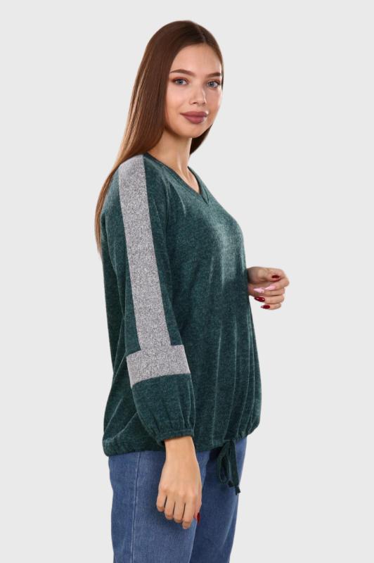Толстовка выполнена из трикотажного полотна с эффектом велюра. Изделие свободного прилегания, низ и рукава отделаны кашкорсе в тон ткани. Акцент толстовки - это оригинально обработанный вырез в виде глазика. В НАЛИЧИИ.