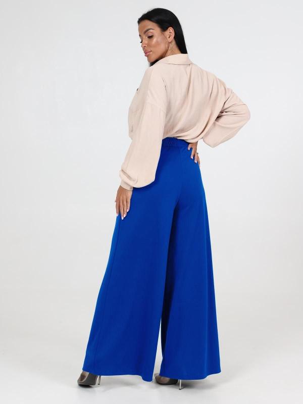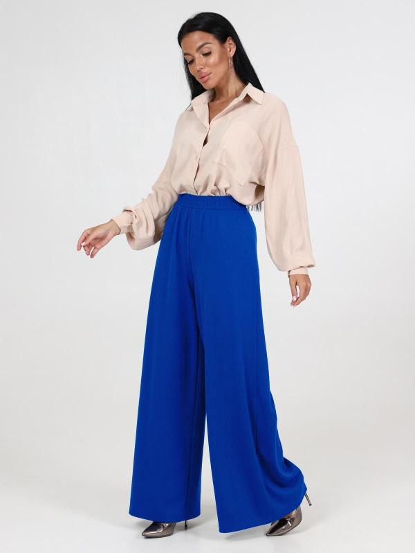 . Широкие брюки, присборенные сверху на поясе-кокетке фигурной формы, внутри которого прикреплена эластичная лента и внизу на высокие манжеты.