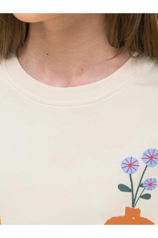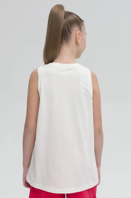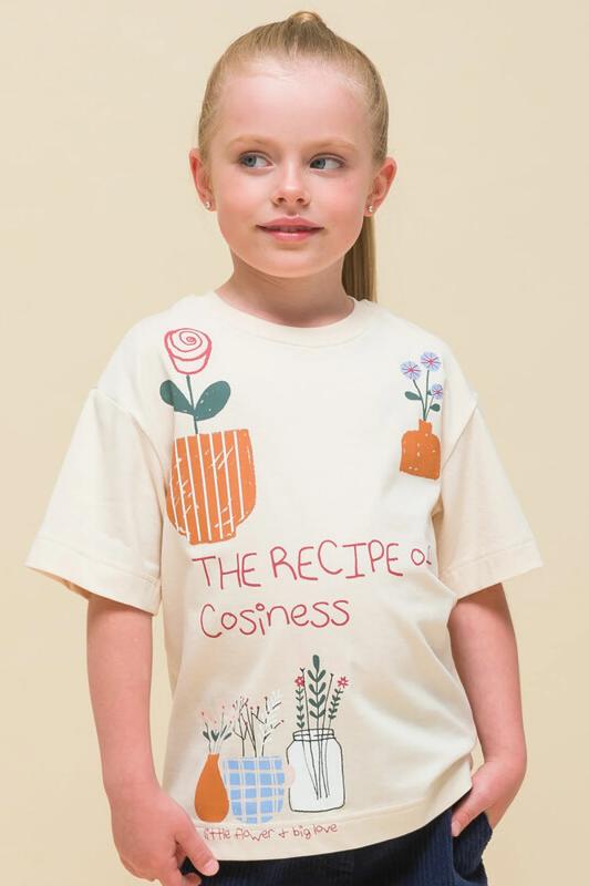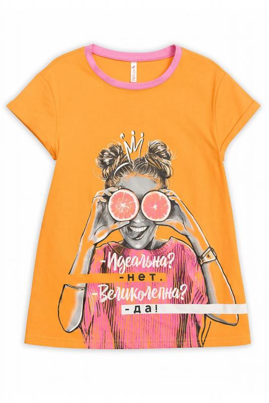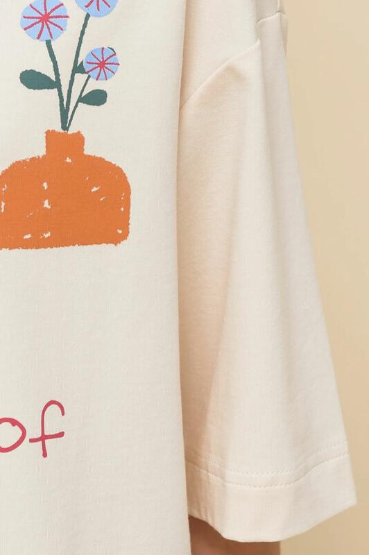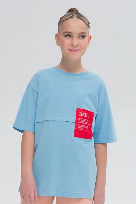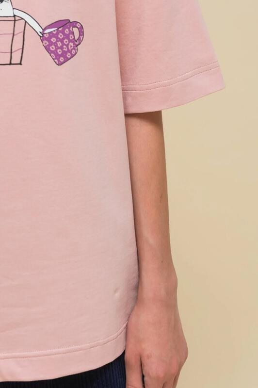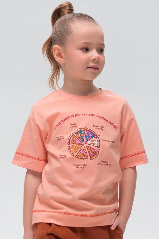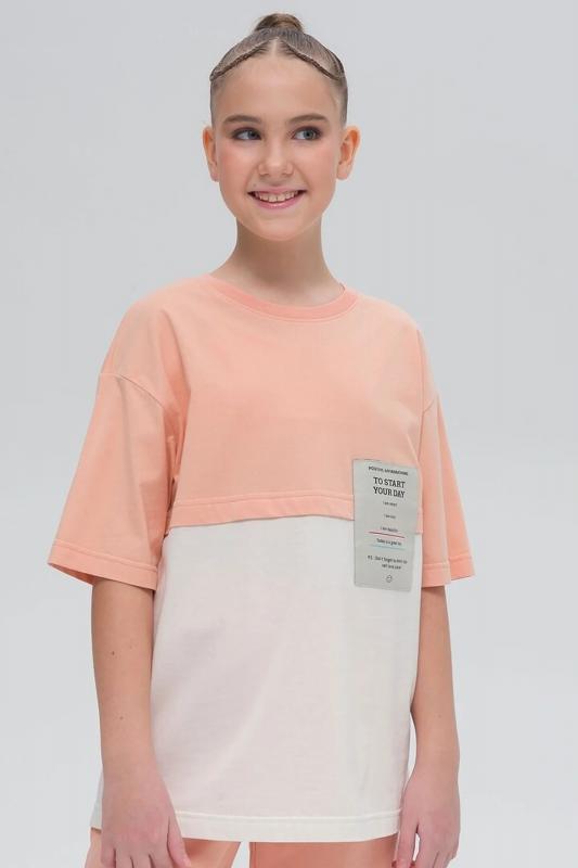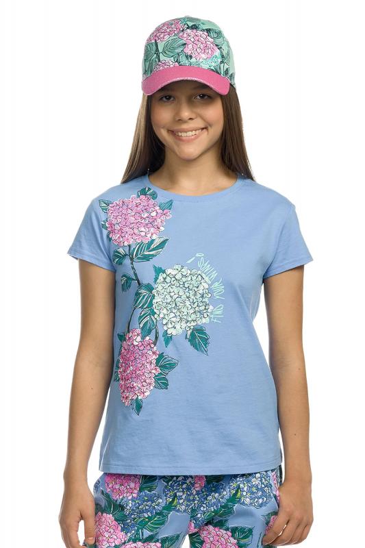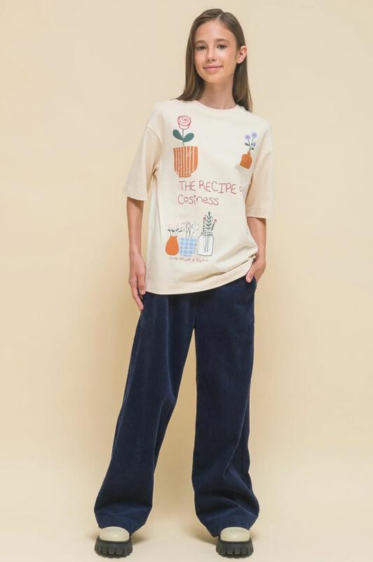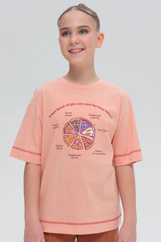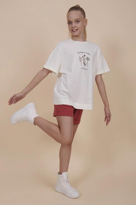 Футболка для девочек. Футболка умеренного объёма с закрепленными отворотами по низу рукавов и мягким прочным принтом.