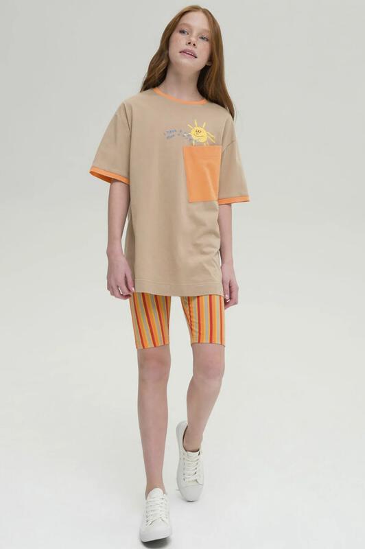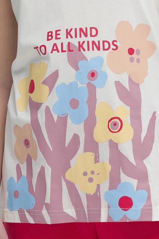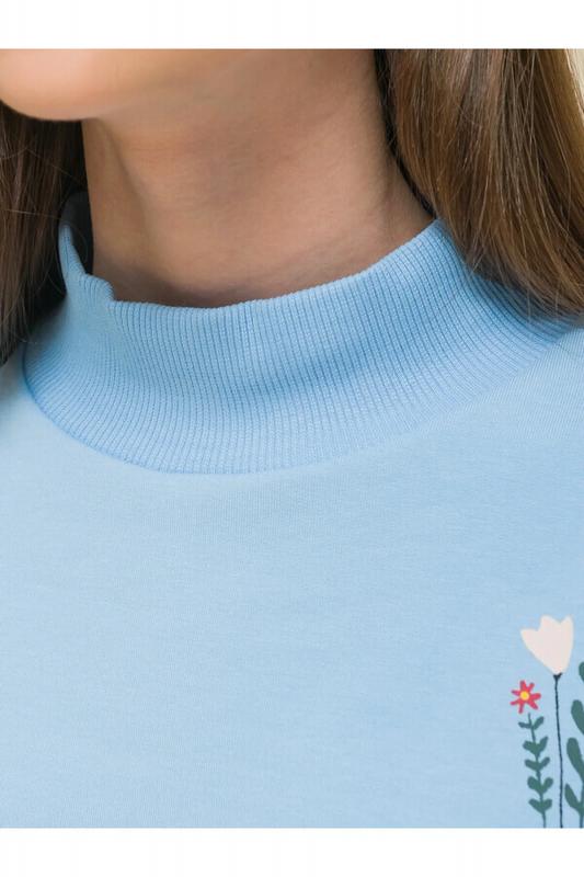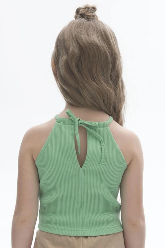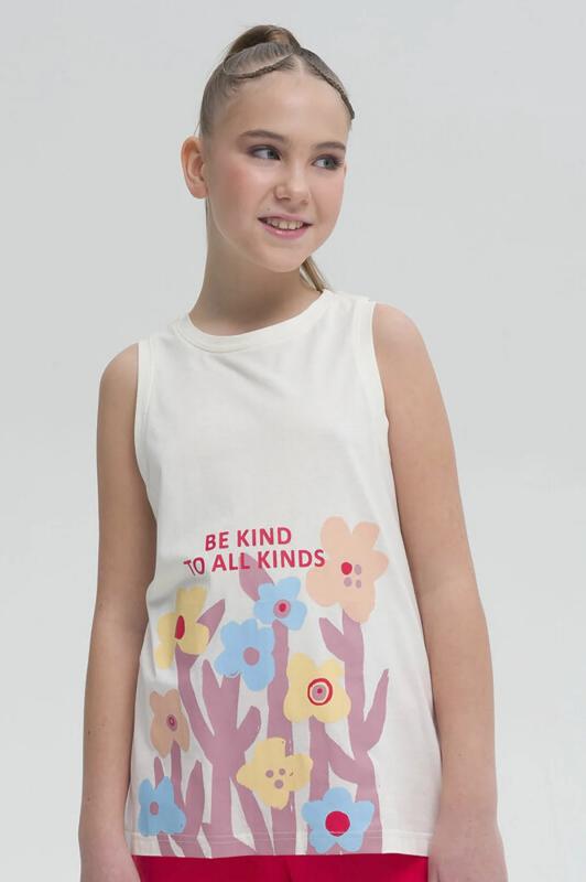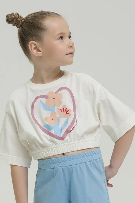 текстурой. В составе ткани преобладает хлопок, поэтому модель комфортная, приятная на ощупь, в ней не будет жарко летом. Эластан в составе ткани помогает изделию сохранять форму. Ткань проста в уходе. Изюминка топа — лаконичная вышивка в виде трёх цветков. Комплект идеально сядет на девочку любой фигуры, можно покупать без примерки. Костюм для настоящих модниц, в нем каждая девочка будет выглядеть стильно и эффектно.