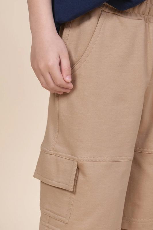 Бриджи для мальчика – объемная и удлиненная модель с большими карманами для повседневной носки на каждый день в садик, на прогулку в городе и на природе. Незаменимый атрибут детского гардероба на лето. Шорты карго удобны в качестве сменной одежды для садика. Бриджи детские выполнены из плотного и мягкого материала футер-петля со 100% содержанием хлопка. Материал хорошо пропускает воздух, обеспечивает здоровую гигроскопичность. Ребенок не потеет и комфортно чувствует себя во время активных игр и занятий спортом. Шорты карго детские не линяют после стирки и сохраняют красивый внешний вид. Бриджи для мальчика с поясом из основного материала на широкой резинке и внутренней регулировке объема шнуром. Благодаря этому шорты длинные для мальчика подходят на любую полноту фигуры. Боковые карманы расположены в швах. Накладные карманы с клапаном на липе. Бриджи детские с множеством карманов удобны для хранения важных мелочей. Изделие представлено в бежевом цвете, его легко сочетать с любым верхом. Это бриджи для мальчи