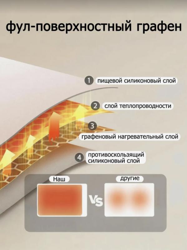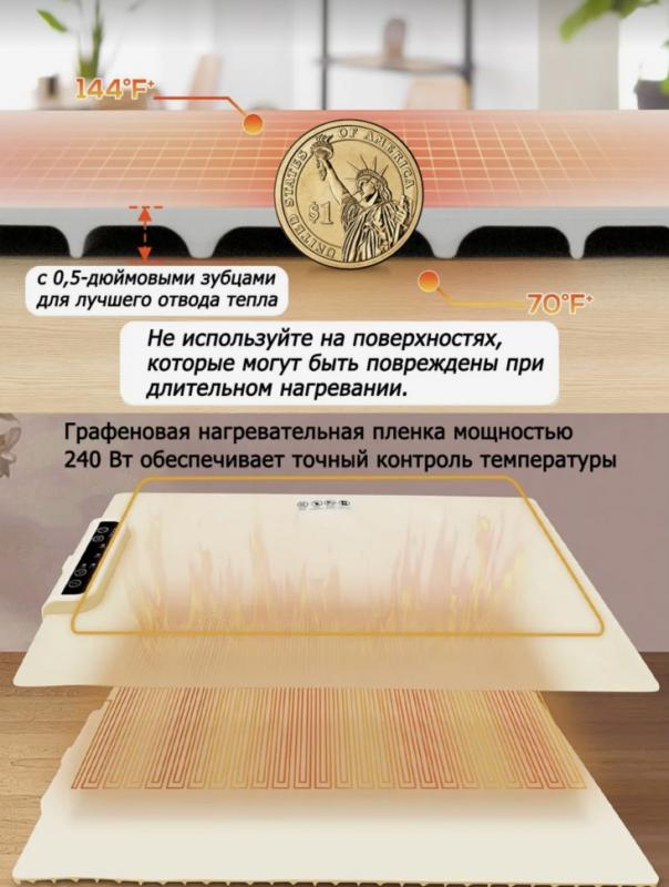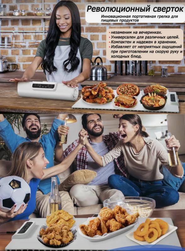 Поднос легко складывается, занимая минимальное место на кухне, а размеры 61х38 см позволяют разместить различные блюда и приборы. Также прибор удобно брать с сбой в поездки и пикники.Коврик для подогрева выполнен из силиконового материала, что обеспечивает легкость в использовании и уходе