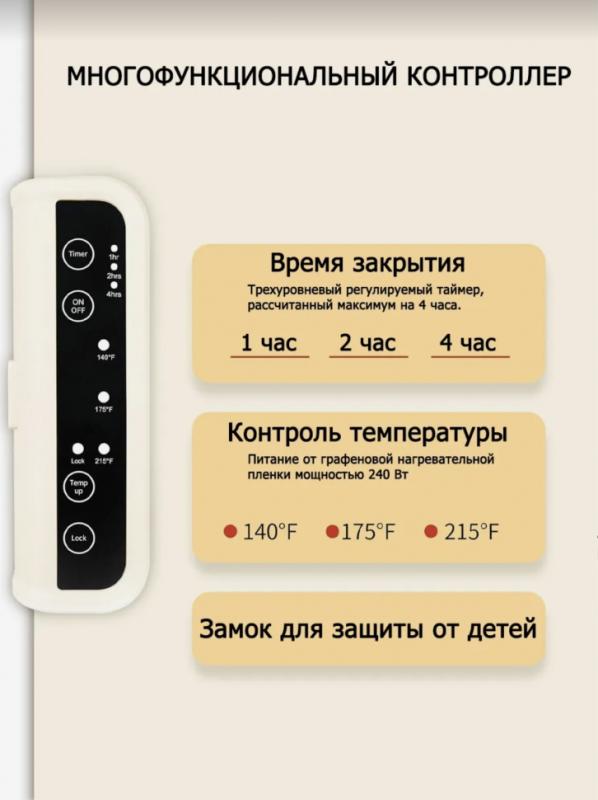 Устройство работает от сети 220В и имеет три температурных режима для подогрева: 140℉,175℉,215℉.