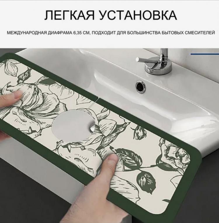 Плотный коврик для защиты от брызг на раковину - это необходимый аксессуар для каждой кухни. Коврик на раковину обладает высоким качеством и прочностью. Кухонный коврик защищает раковину и стену от брызг и разводов. Он изготовлен из плотного материала, который не скользит и не деформируется при использовании. Благодаря своей плотности, коврик на кран легко моется, быстро сохнет и не впитывает запахи.