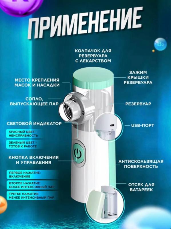 Портативный медицинский небулайзер - это инновационный ингалятор, который сочетает в себе простоту использования и высокую эффективность. Он предназначен для лечения различных заболеваний дыхательных путей, таких как астма, бронхит и другие. Ингалятор детский предназначен для облегчения дыхания и лечения простуды. Ручной ингалятор не нагревает лекарство, а превращает его в комфортный пар комнатной температуры, что является безопасным и эффективным при лечении. Ингалятор состоит из трех основных частей: резервуара для хранения лекарства, распылителя, превращающего жидкое лекарство в туман, и мундштука или маски, которая позволяет пациенту вдыхать лекарство, которое в таком формате быстро поступает в организм. Кроме того, небулайзер является портативным и тихим устройством, что делает его идеальным выбором для использования дома или в дороге. Он легко помещается в сумку или карман, и не будет мешать вам во время использования.