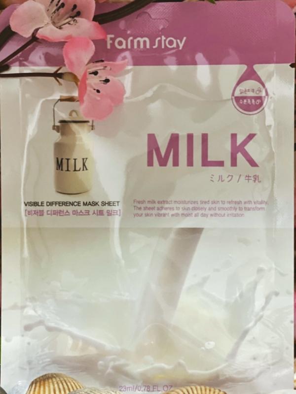 Тканевая маска с молоком FarmStay Visible Difference Milk Mask Sheet питает и увлажняет, смягчает, способствует восстановлению гидр липидного баланса, предохраняет кожу от обезвоживания, замедляет процессы старения кожи, осветляет пигментацию и веснушки, улучшает тон и структуру кожи, возвращая сияние и здоровый вид. Экстракт молока обладает сильными регенерирующими и питательными свойствами. Лакто ферменты молока увлажняют и тонизируют кожу, делая ее упругой и эластичной. Аминокислоты молока удаляют верхний слой омертвевших клеток, омолаживая и замедляя процесс старения кожи. Экстракт выравнивает цвет лица, немного осветляя его, делает кожу гладкой и мягкой, создает защитный слой от воздействия внешних факторов. Применение: Маски наносят на очищенную кожу на 20-40 минут. Для достижения лучшего результата, перед нанесением маски можно использовать скраб или сделать легкий пилинг, это улучшит проникновение полезных компонентов в кожу. Маску еще в закрытом пакете стоит немного помять, чтобы эссенция равномерно