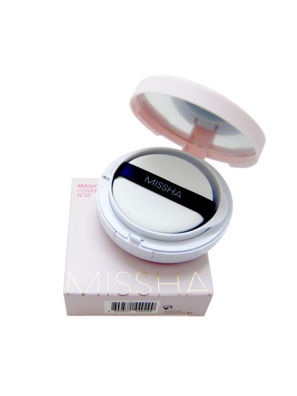 Тональное средство в компактной упаковке-тональный кушон с превосходным покрытием **Missha Magic Cushion Cover Lasting**. Средство обладает потрясающими маскирующими способностями и отлично справляется с маскировкой несовершенств кожи.Благодаря удобному пористому спонжу средство ровно ложится на кожу очень тонким слоем, делая макияж естественным. Тональный кушон содержит в своем составе сок бамбука и экстракт гамаммелиса,благодаря чему обладает успокаивающим кожу эффектом,контролирует работу сальных желез и препятствует появлению жирного блеска в области Т-зоны.