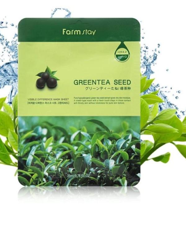 FarmStay Visible Difference Mask Sheet Green Tea Seed — это листовая ухаживающая маска для лица с семенами зелёного чая . Она хорошо тонизирует , освежает , увлажняет и смягчает кожу , выравнивает её рельеф , избавляет от отёчности , серости и избыточной жирности . Зелёный чай пробуждает и тонизирует кожу лица , подбородок, лоб , нос , создаёт оптимальную микрофлору на поверхности эпидермиса , отражает атаку свободных радикалов кислорода , предотвращает окислительный стресс и защищает дерму от раннего старения. Рекомендуется использование от 1-го до 3-х раз в течение недели . Ваша кожа непременно скажет вам спасибо . Удобный формат маски для лица можно брать с собой в дорогу , незаменимая вещи для защиты от солнца , косметичка должна быть с уходовой косметикой.