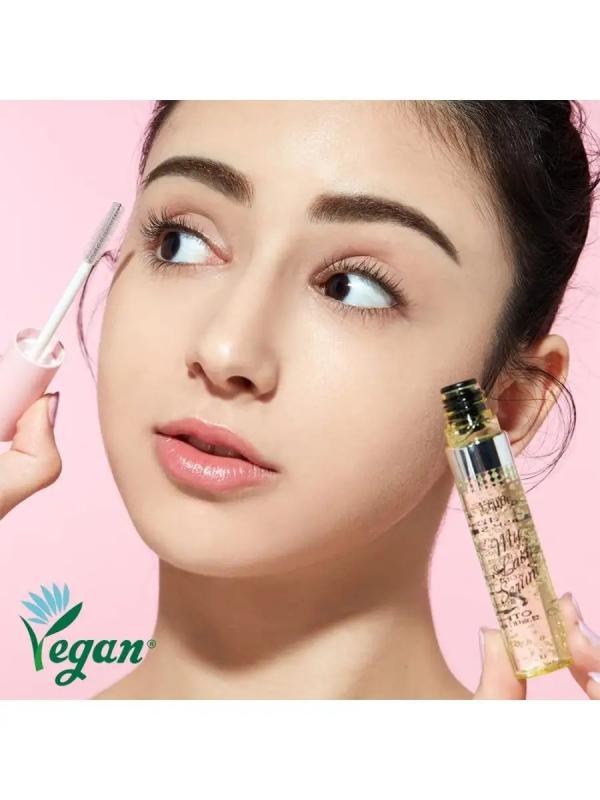 Какая девушка не мечтает о пышных, объемных и вьющихся ресницах? Зачастую бывает, что после некоторых салонных процедур, к примеру, наращивание, качество и количество ресниц может резко снизиться, тогда на помощь приходит такое средство как сыворотка для роста ресниц My lash serum Сыворотка призвана обеспечивать необходимую защиту и питание, стимулировать рост ресниц, укреплять и предотвращать их выпадение. Регулярное применение средства обеспечит ускорение роста, здоровье и ухоженность, в особенности этот продукт будет полезен любительницам частых завивок ресниц. Основу сыворотки составляют полезные растительные масла, витамины, экстракт кизиловых ягод и пантенол. Несмотря на присутствие масел в составе, текстура сыворотки довольно легкая, она не имеет особой жирности или маслянистости, и имеет гелевую структуру. Цвет средства прозрачный с немного желтым оттенком, ресницы не замасливает, не склеивает и не утяжеляет. После систематичного применения сыворотки вы заметите, что ресницы реже выпадают, становятся