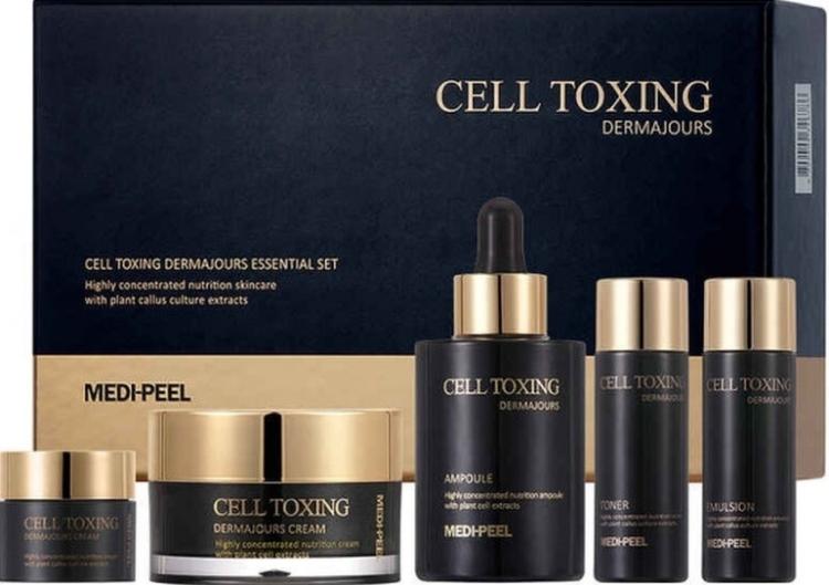 Омолаживающий набор со стволовыми клетками Medi-Peel Original Cell Toxing Dermajours Essential Set представляет собой полноценный антивозрастной уход, направленный на многостороннее anti-age воздействие. Эффективно восстанавливает упругость кожи, замедляет процессы старения, разглаживает морщинки и кожные заломы и препятствует образованию новых. Средства направлены на тщательное глубокое восстановление увядающей кожи. Устраняют обезвоженность, улучшают микроциркуляцию в тканях эпидермиса, деликатно осветляют нежелательную пигментацию. Нейтрализуют агрессивное воздействие свободных радикалов, ультрафиолета и факторов окружающей среды, замедляют окислительные процессы и поддерживают здоровье кожи. Для наиболее активного воздействия в средствах используются липосомные капсулы, которые осуществляют точечную доставку активных ингредиентов в проблемные зоны. Такой метод позволяет провести полезные вещества в глубокие слои кожи, улучшает их усвояемость и усиливает эффект от применения средства, помогает направленно