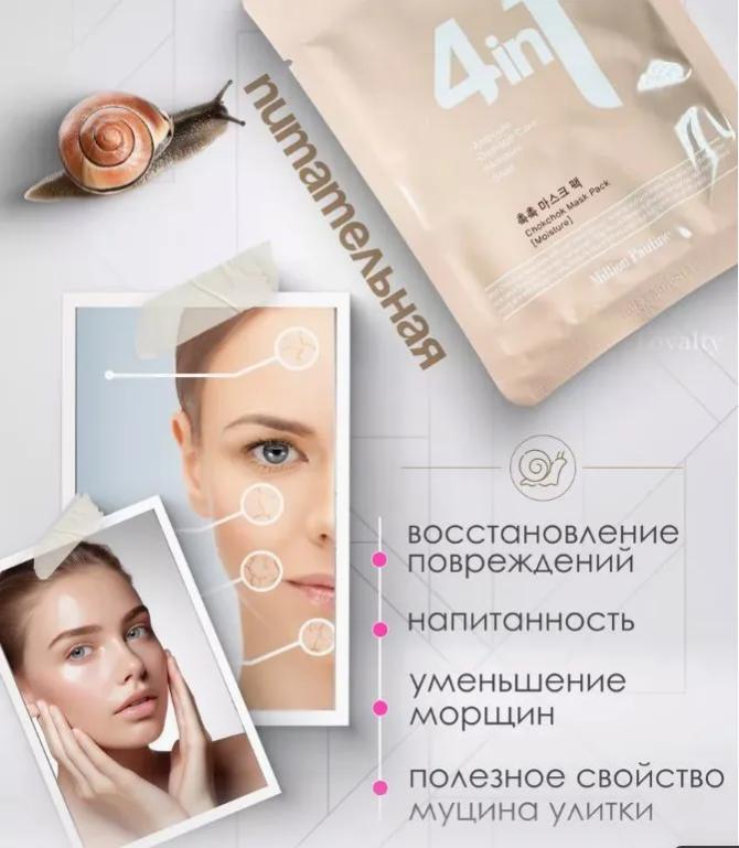 Тканевые маски для лица с муцином улитки отлично увлажняют кожу, осветляют и предотвращают повреждения благодаря своему надежному составу. Шикарные маски от популярного бренда Dr. Cellio 4 in 1. В упаковке 10 масок Маска сделана из нежной тканевой основы и щедро пропитана питательной эссенцией, благодаря чему обеспечивается более интенсивное и глубокое проникновение активных веществ. Маска плотно прилегает к коже и блокирует доступ воздуха, благодаря чему активные вещества проникают еще глубже в клетки кожи. Способ применения: нанести на очищенную кожу и равномерно распределить маску по всему лицу. Оставьте на 20-30 минут, затем аккуратно снять маску и дать остаткам средства впитаться в кожу.