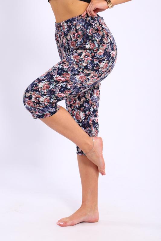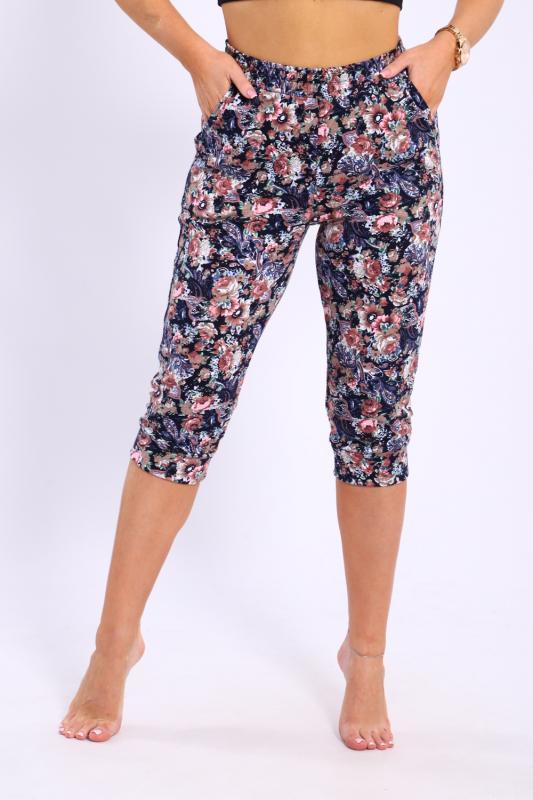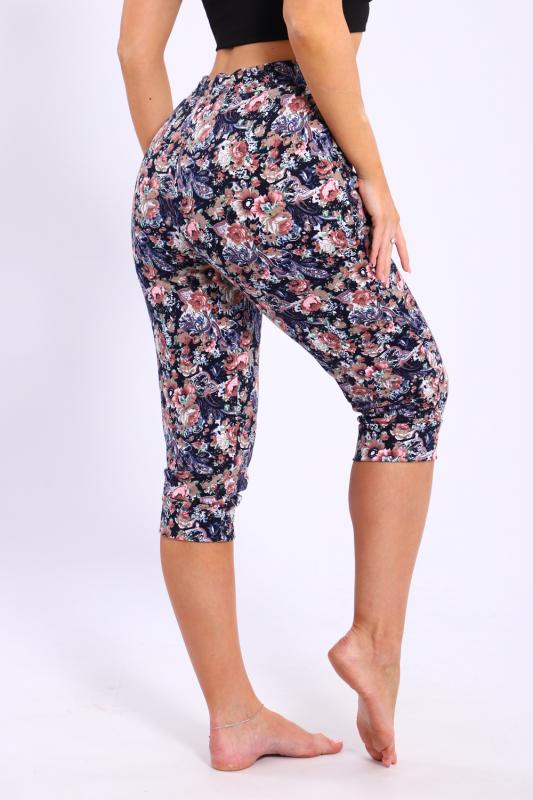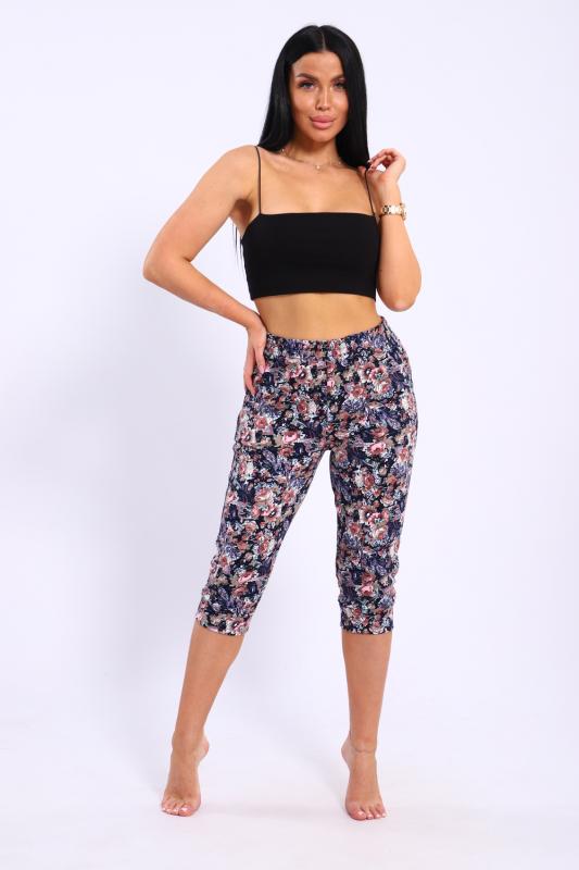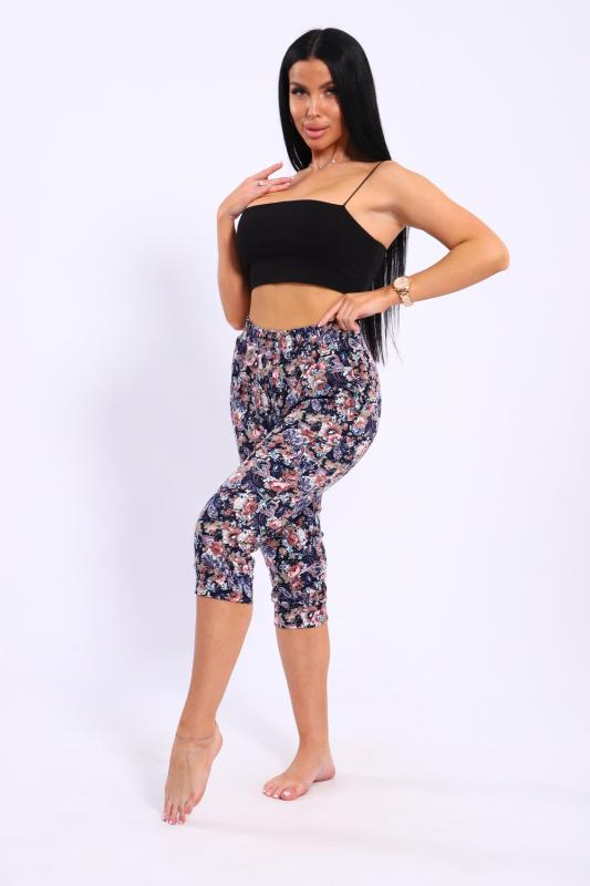 Бриджи женские с цветочным узором, эластичным поясом и двумя боковыми карманами. Бриджи выполнены из премиального интерлока.