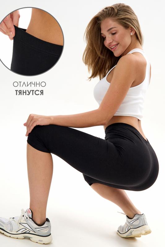 Бриджи-велосипедки облегающие, длиной выше колена, сверху на резинке.