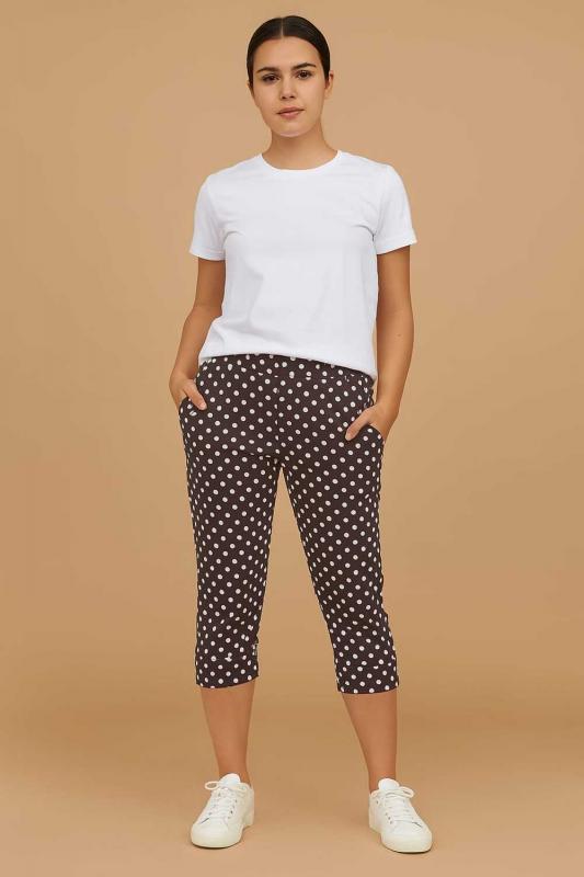 Бриджи женские в горох, с эластичным поясом, двумя боковыми карманами. Материал - хлопок. Универсальный вариант в гардеробе каждой женщины.
