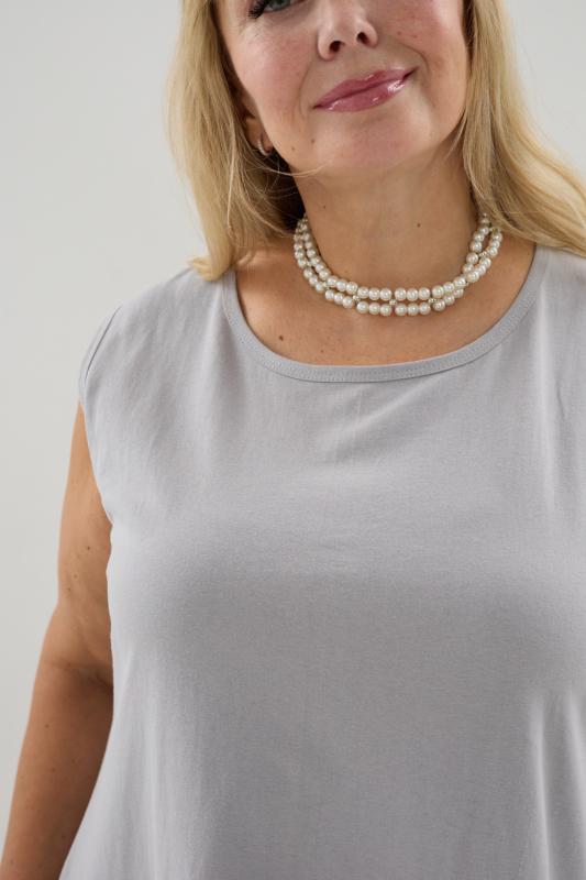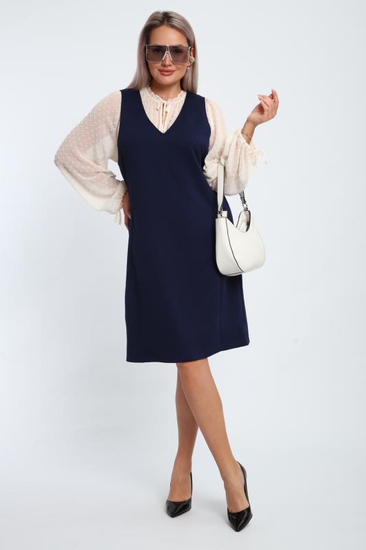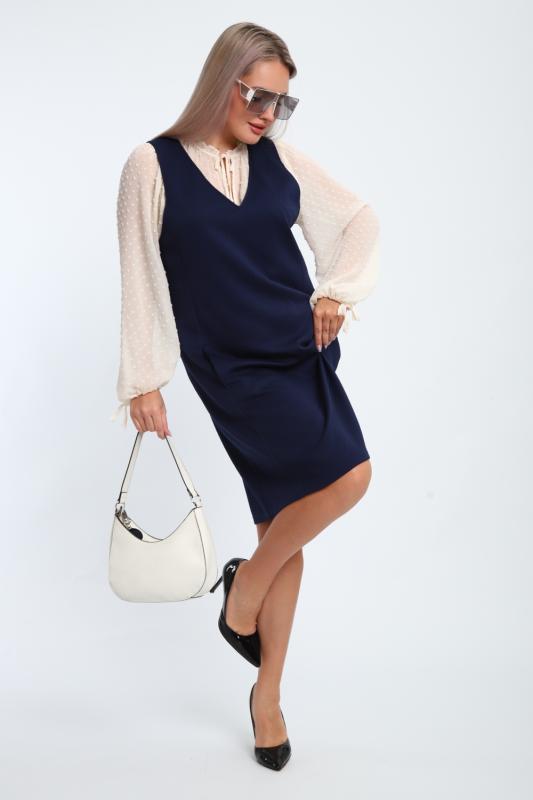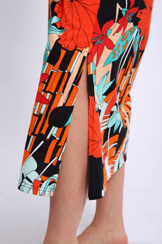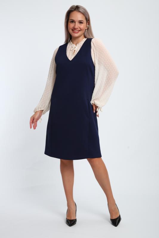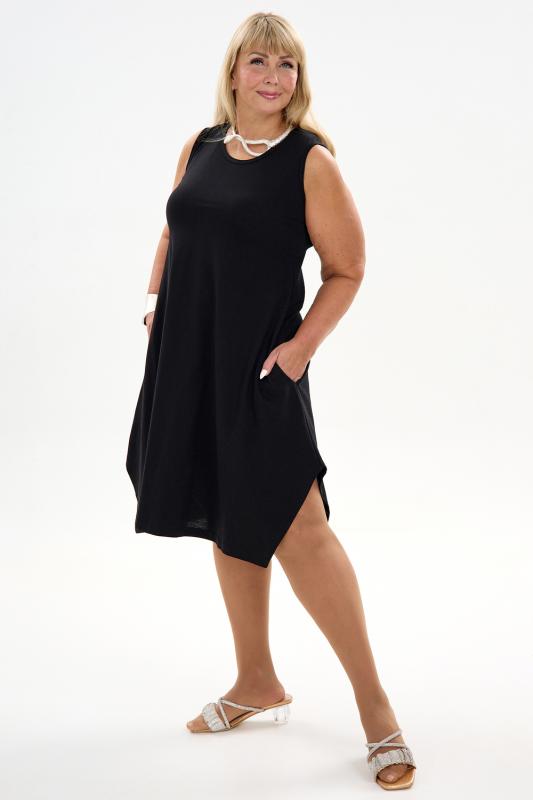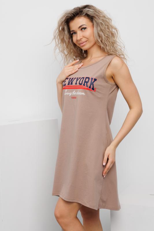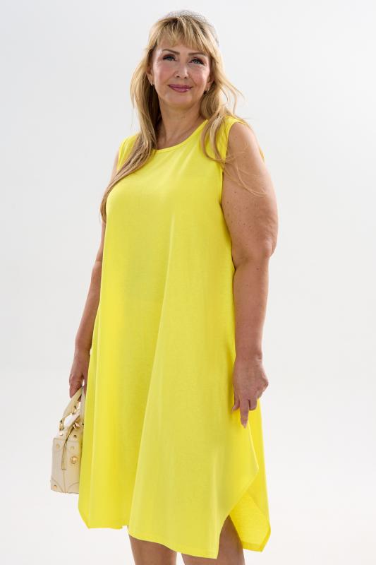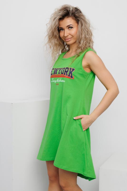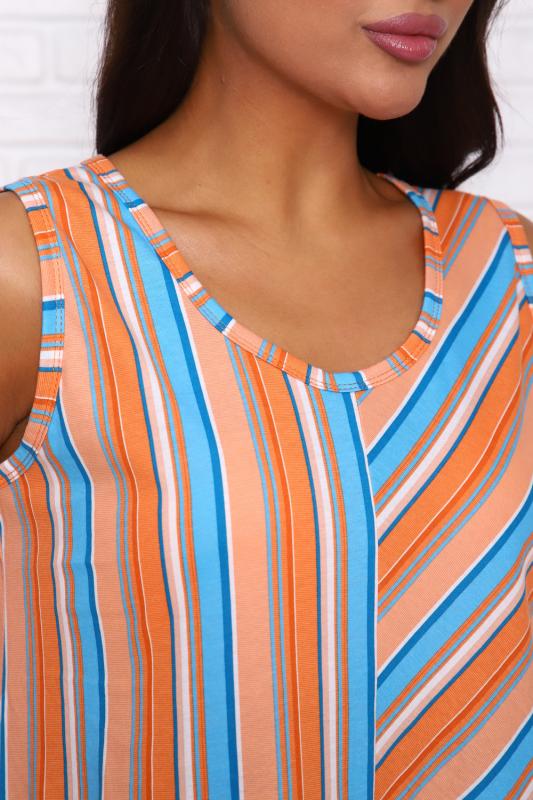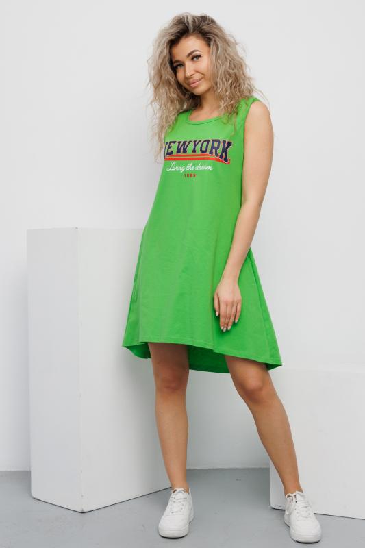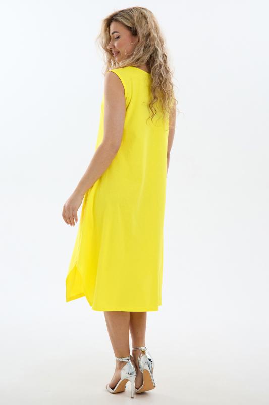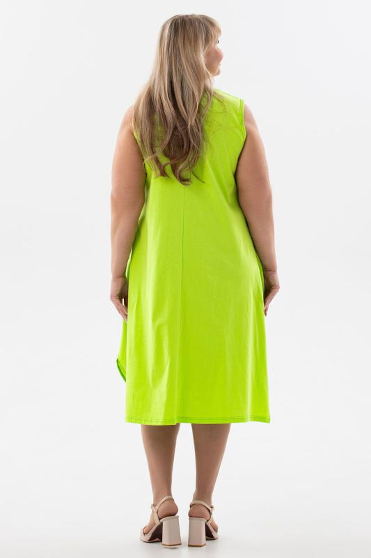 Сарафан женский выполнен из трикотажного полотна кулирка. Сарафан свободного силуэта, по низу изделия выполнены разрезы. Горловина и пройма окантованы.