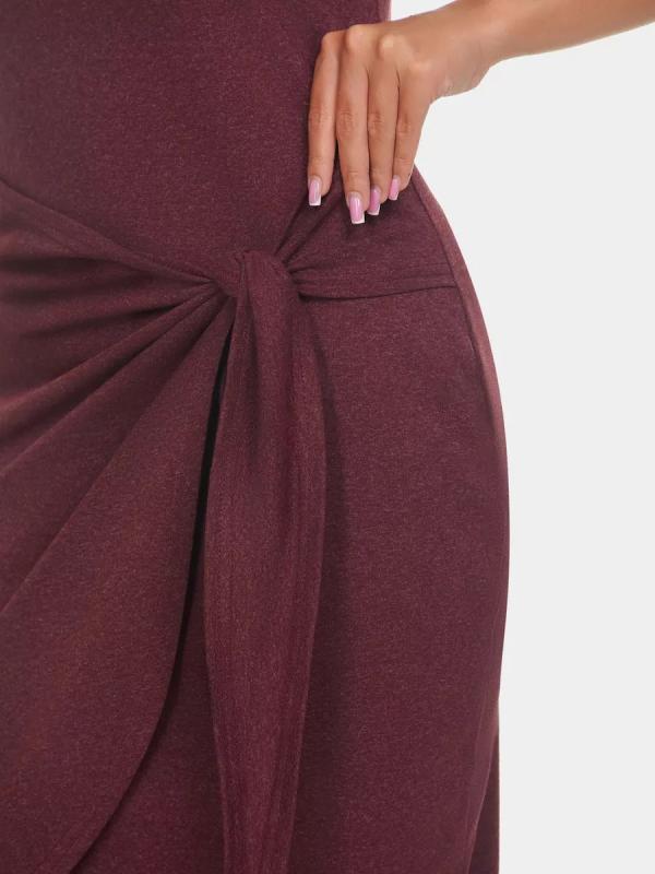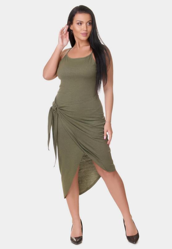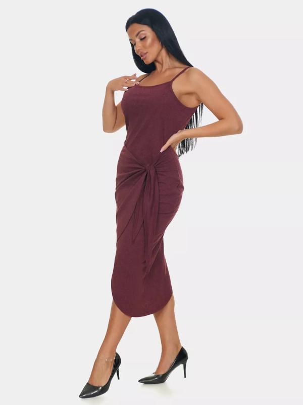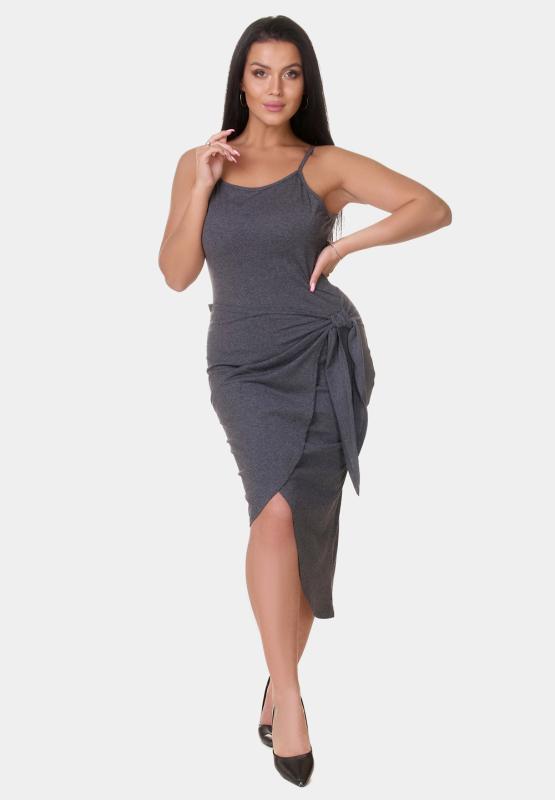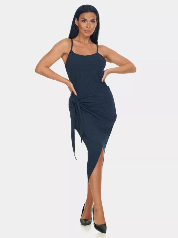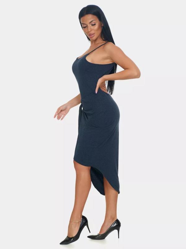Модный сарафан с трендовым асимметричным подолом и декоративным узлом выгодно подчёркивает талию и делает ноги визуально стройнее. Лёгкий, удобный и очень женственный — must-have для жаркого сезона.