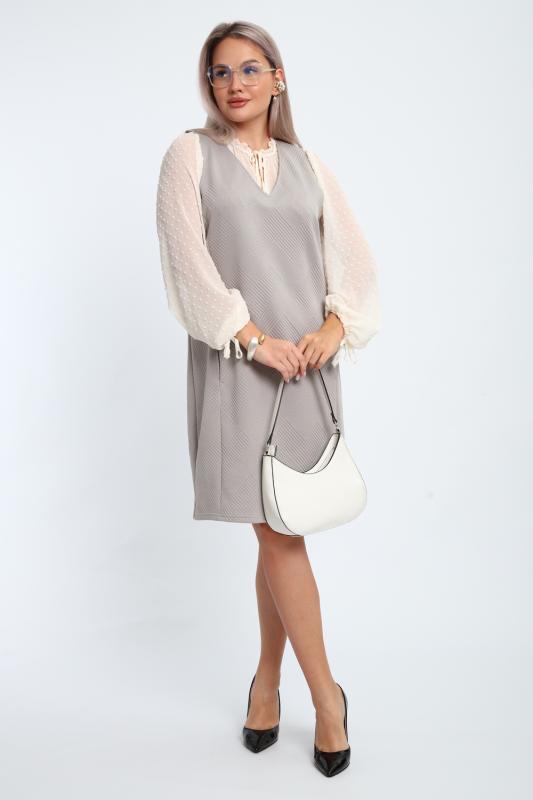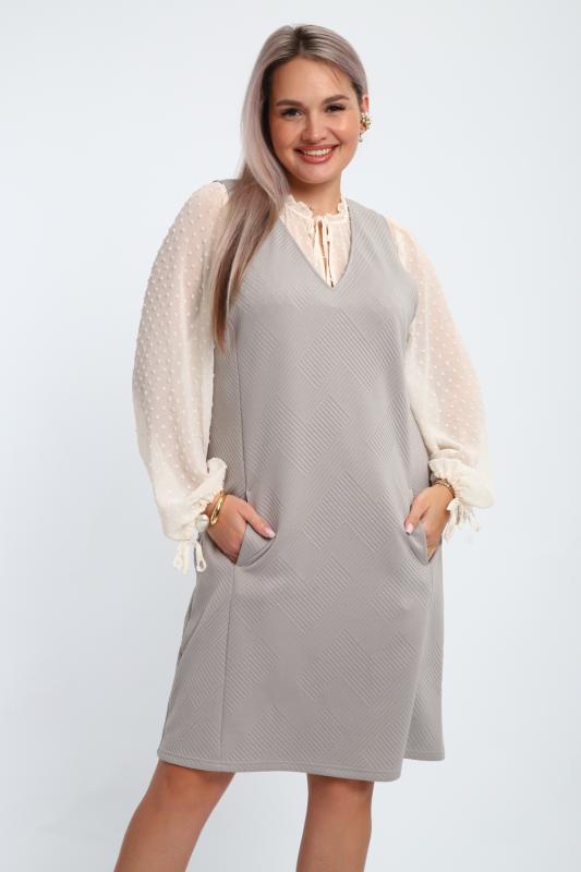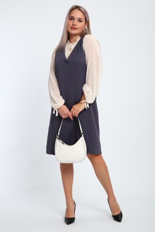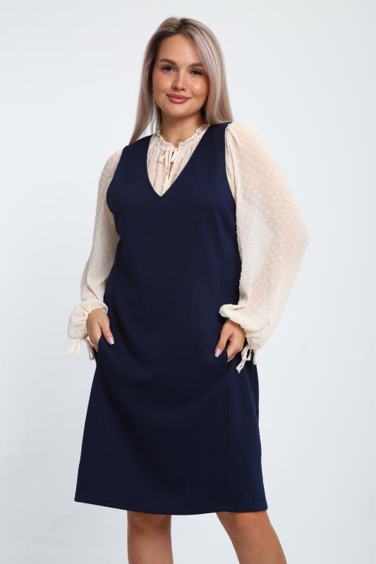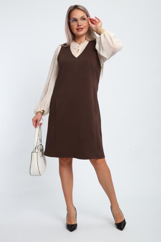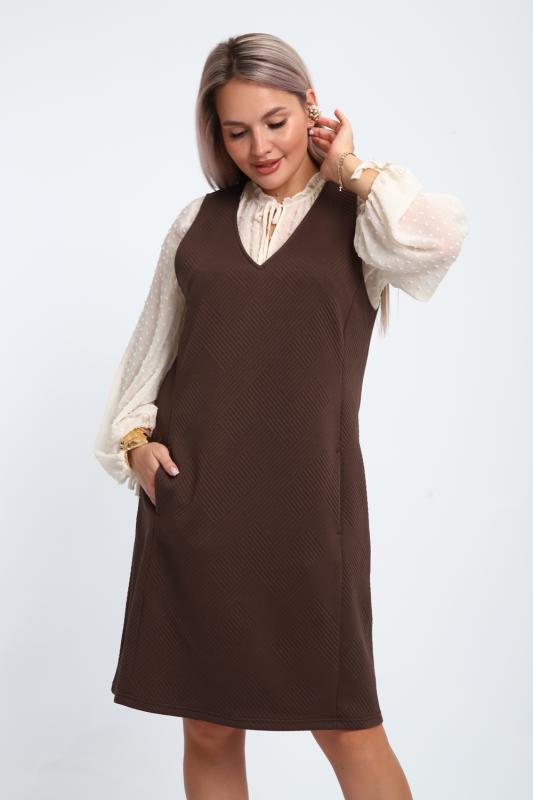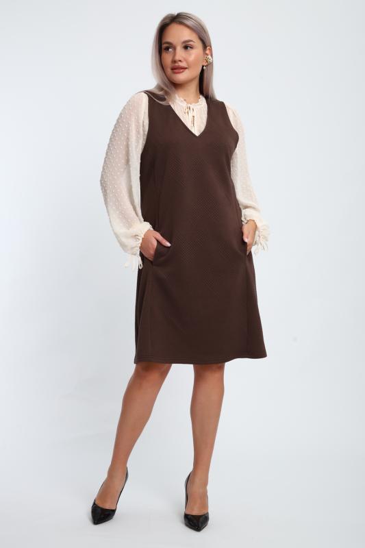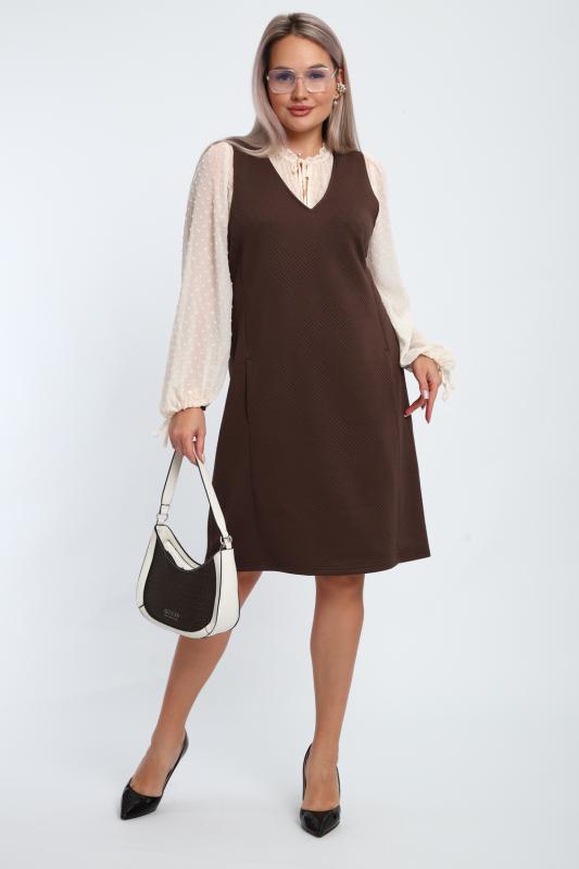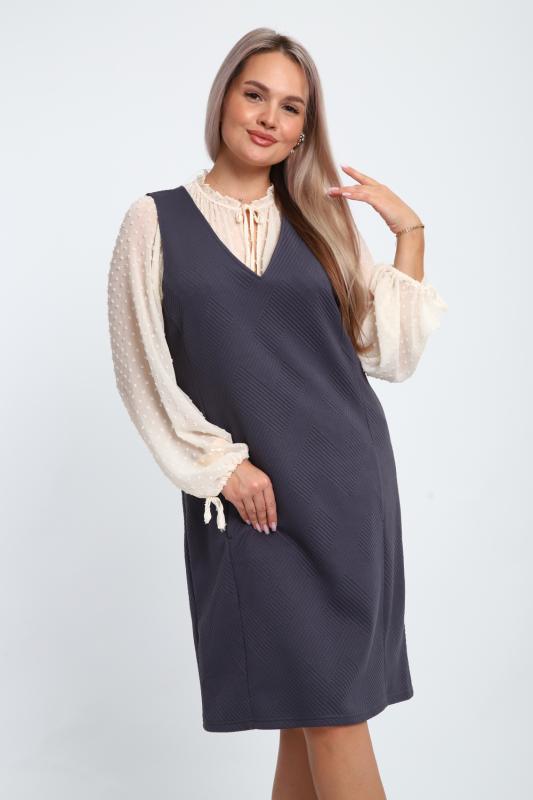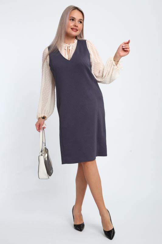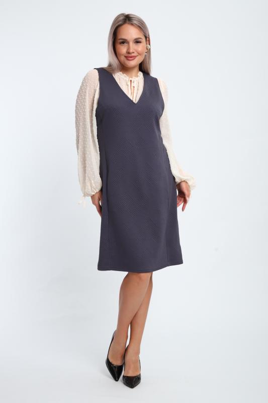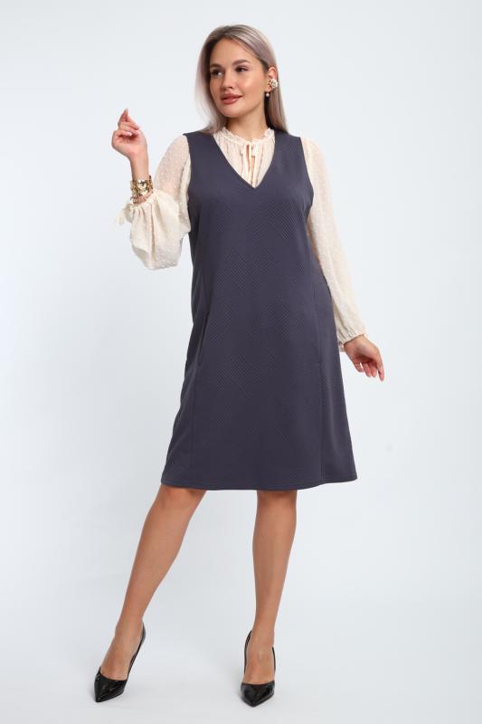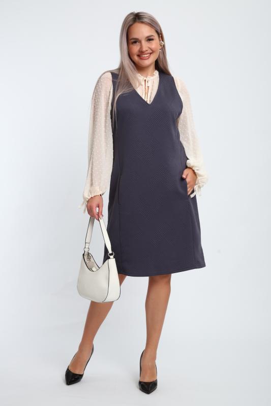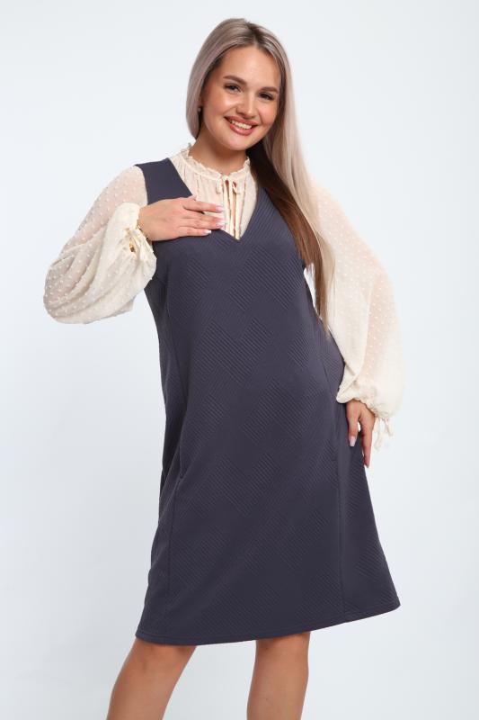 Создайте свой неповторимый образ с помощью универсального сарафана, к которому можно подобрать разнообразные блузки, водолазки, свитшоты. Сарафан прямого кроя, слегка притален, благодаря отрезному бочку, аккуратная V-образная горловина обработана обтачкой, в швах притачивания бочков имеются внутренние карманы. Пройма достаточно глубокая, чтобы не стеснять рукав блузки, длина до середины колена. Лаконичность деталей кроя подчеркивает стиль и элегантность изделия. Свободный крой сарафана и воздухопроницаемость ткани обеспечивают комфорт и свободу движения, что делает его идеальным для повседневного ношения. Модная геометрическая рельефная фактура ткани придает изделию стильный и современный образ. Базовые расцветки сарафана помогут с легкостью подобрать к нему пару.