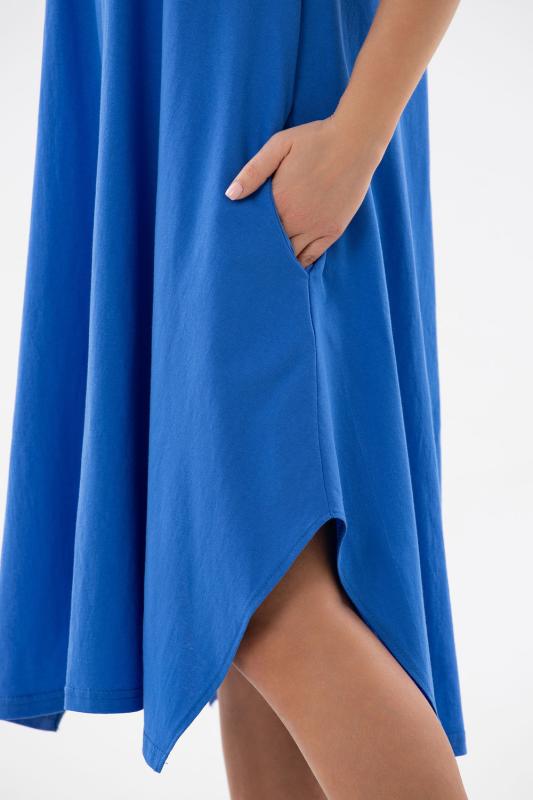 Сарафан женский с рукавами и открытыми плечами выполнен из хлопкового трикотажного полотна (кулирка). В этой модели имеются карманы в швах. Низ рукава со складками и манжетами. Верх собран на резинку 2,5 см. В этой лёгком воздушном сарафанчике можно гулять и отдыхать. Подходит для беременных.