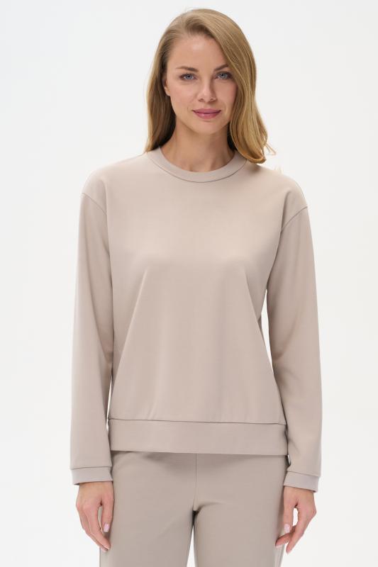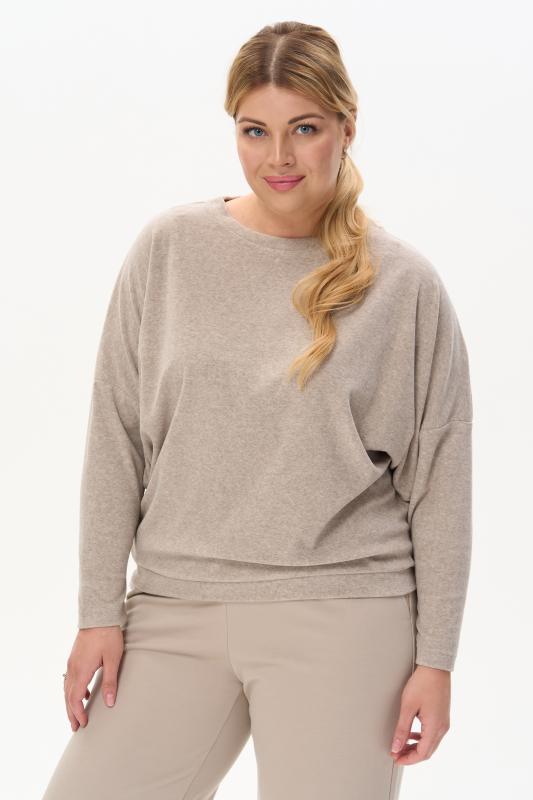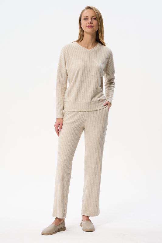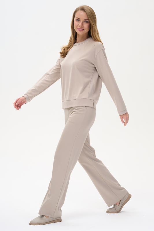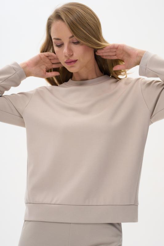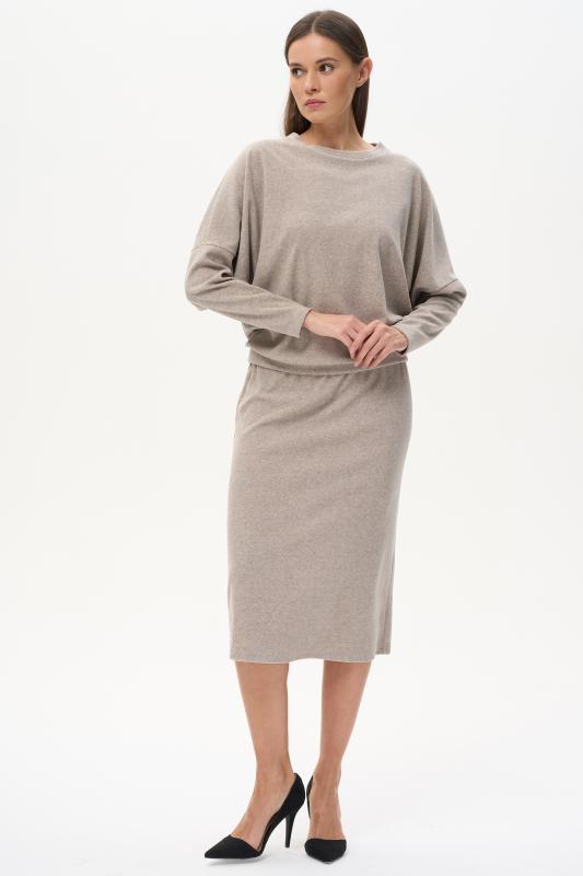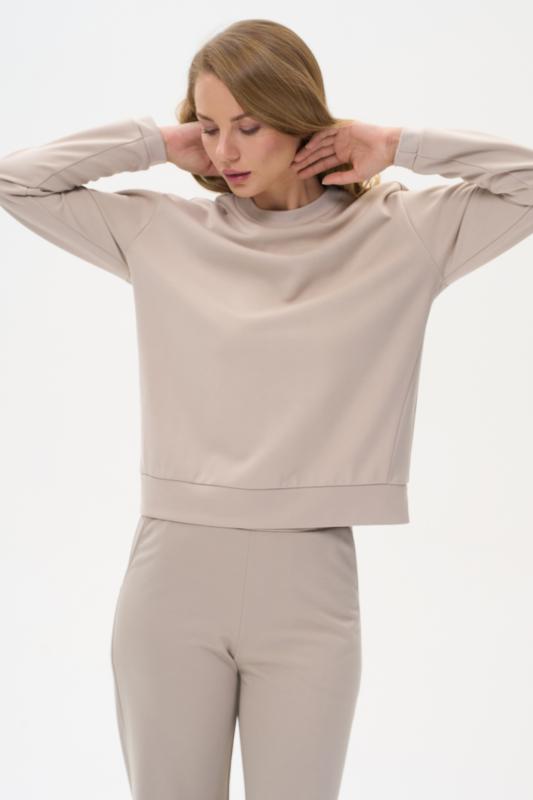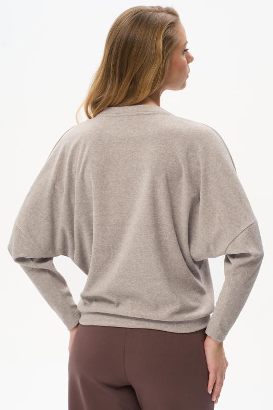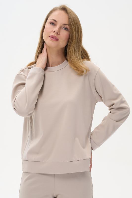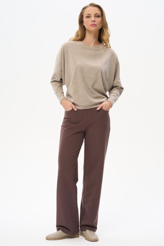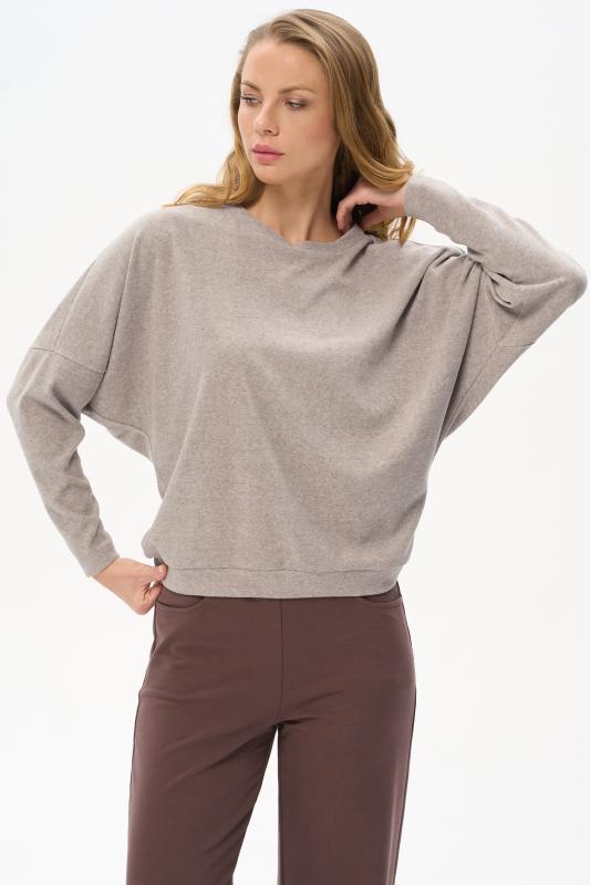 Элегантный джемпер в стиле 80-х, с заниженной проймой, почти от талии. Рекомендуем дополнить образ юбкой из такого же полотна, либо брюками из футера бежевого цвета.