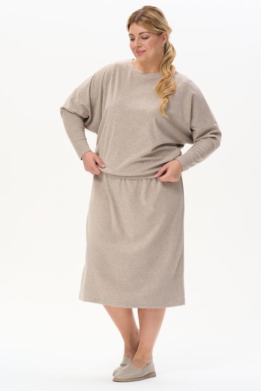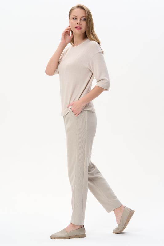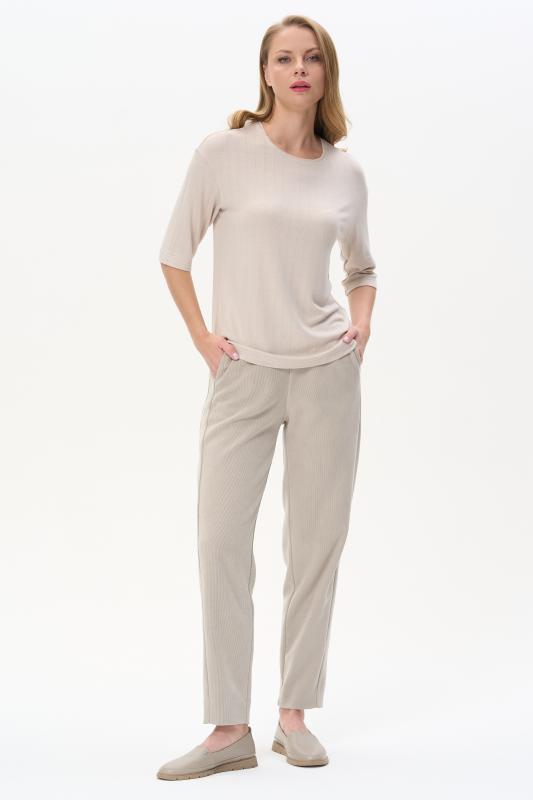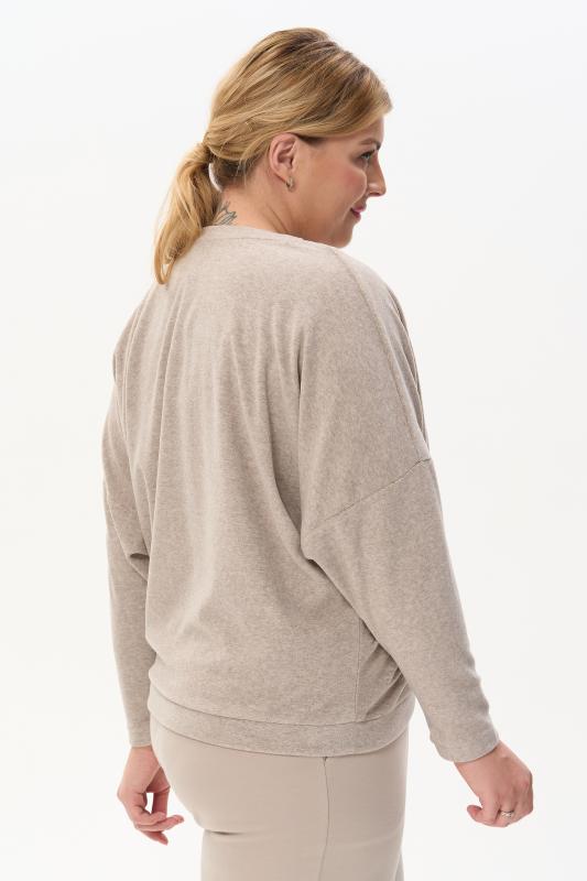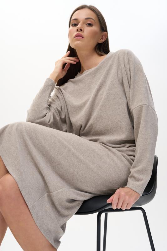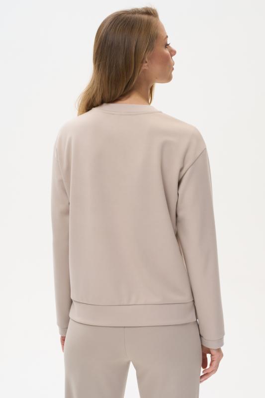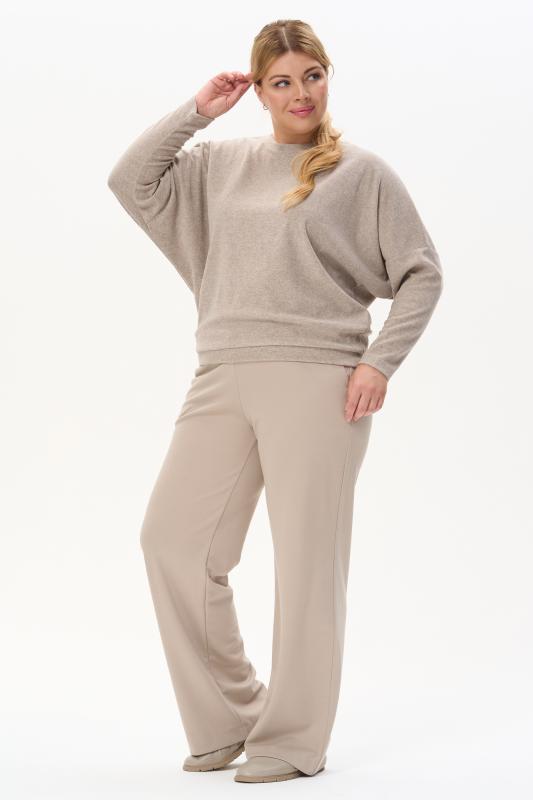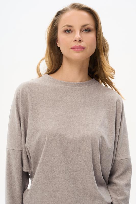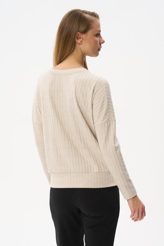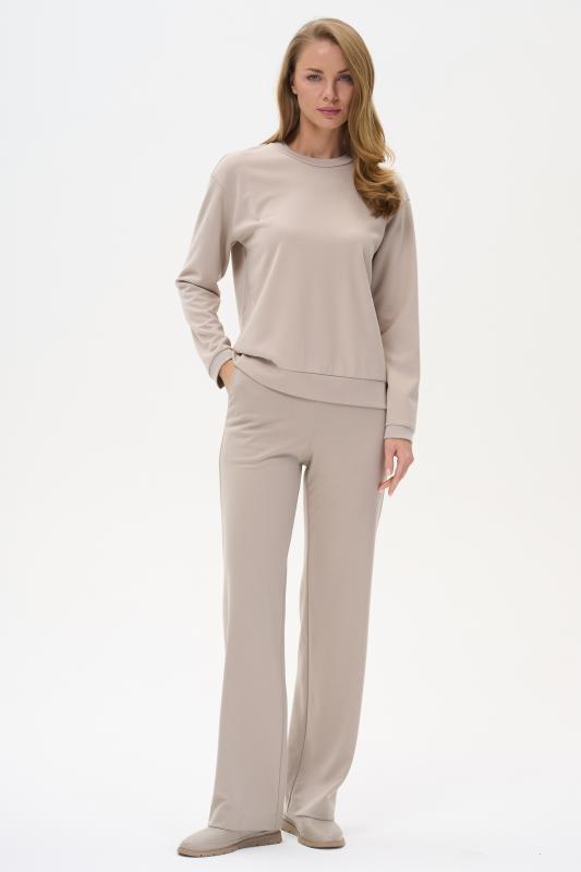 Элегантный джемпер в стиле 80-х, с заниженной проймой, почти от талии. Рекомендуем дополнить образ юбкой из такого же полотна, либо брюками из футера бежевого цвета.