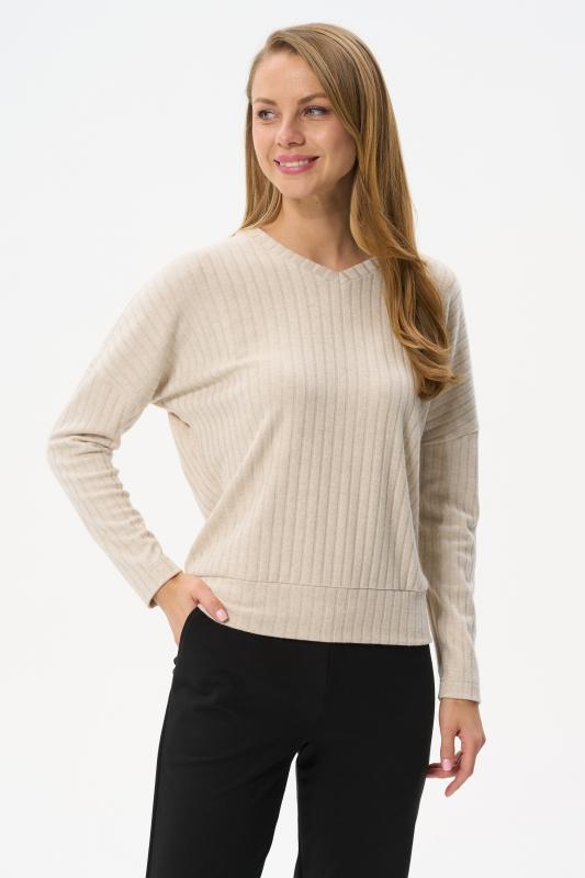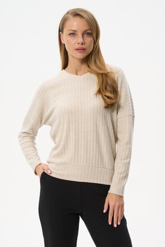 Теплый джемпер из фактурного вискозного полотна. V - образный вырез горловины, спущенная линия плеча, длинные рукава. Рост модели на фото 178 см.