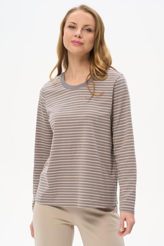 Повседневный джемпер из хлопкового полотна качества пенье. Модель с круглым вырезом горловины и длинными втачными рукавами. Рост модели 178 см.