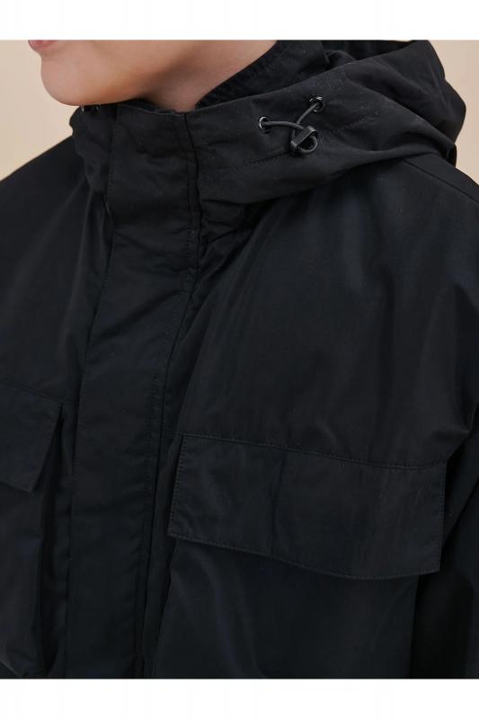 Куртка зимняя для мальчика с горизонтальной стёжкой. На внешнюю поверхность материала нанесена водоотталкивающая пропитка (DWR), она задерживает грязь и влагу снаружи — ребёнок не промокнет, есть дополнительная пропитка на внутренней стороне ткани. Куртка прямого оверсайз-силуэта. Капюшон не отстегивается. Внутренние манжеты рукавов из рибаны — защита от ветра и холода. Куртка-трансформер с отстегивающейся нижней частью. Модель имеет две длины: короткая (до подъягодичной складки) и средняя (до середины бедра). Капюшон с двумя швами, что обеспечивает анатомически правильную форму и комфортную посадку по голове. Легко одевается на шапку. Капюшон застёгивается на липучку (велькро), объём реглируется эластичным шнуром со стопперами. Высокий воротник-стойка, утепленный синтепоном и флисом на внутренней стороне, защищает шею от холода и ветра. Горло закрыто, шарф не нужен. Центральная застёжка на пластиковую тракторную молнию, разъёмную с двух сторон — удобно садиться, пуллеры металлические, прочные. Сверху планка