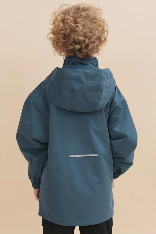 (DWR). Мембранная ткань хорошо защищает нижние слои одежды от намокания. Структура мембраны позволяет коже дышать и сохранять тепло. Ткань устойчива к износу, воздействиям солнечных лучей и влаги. Предусмотрено членение подклада (по стану хлопковый, в рукавах полиэстер) — благодаря этому ребенку легко надевать куртку, руки не путаются в рукавах. Куртка ветровка для мальчи