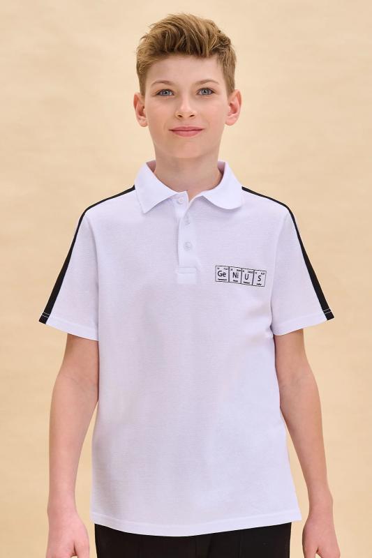Поло для мальчика с коротким рукавом из актуальной ткани пике. Идеально сочетается как с пиджаками, так и с жилетами. Поло школьное для мальчика свободного силуэта комфортной длины прекрасно садится на ребёнка с любой фигурой. Классический отложной воротник из эластичной рибаны не растягивается и надолго сохраняет первоначальную форму. У горловины застёжка на пуговицы — ребёнку удобно надевать и снимать. В составе ткани 100% высококачественного хлопка плотностью 180 гр-м2 — изделие отлично пропускает воздух, давая коже дышать, ребёнку не жарко. Джемпер поло однотонное, украшено лаконичным принтом в виде таблицы Менделеева, надпись переводится: «гений». Принт стойкий, легко переносит частые стирки. Футболка поло для мальчика школьная представлена в нескольких универсальных цветах. Легко комбинируется с любыми пиджаками и брюками. Поло детское для мальчика — прекрасный вариант школьной формы. Помните о правильном уходе за изделием: рекомендуется стирать при температуре не выше 30 °C, без предварительного замач