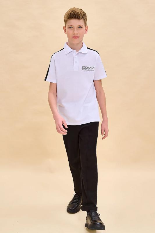 Футболка-поло из 100% хлопка для мальчика. Натуральный состав ткани обеспечивает изделию мягкость, воздухопроницаемость и комфортность. Воротник из рибаны — долго не теряет форму и устойчив к частым стиркам. Модель декорирована лампасами вдоль плечевых швов и рукавов — один из актуальных трендов. На груди оригинальный силиконовый принт в виде элементов таблицы Менделеева, который устойчив к частым стиркам. Застёжка на 3 пуговицы под горловиной — удобно надевать и снимать. Стильный вариант школьной формы для мальчиков.