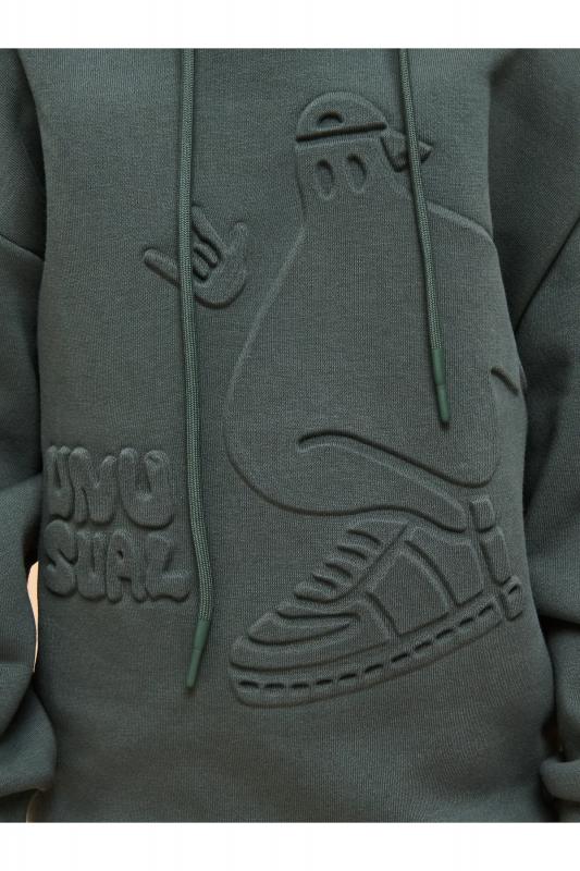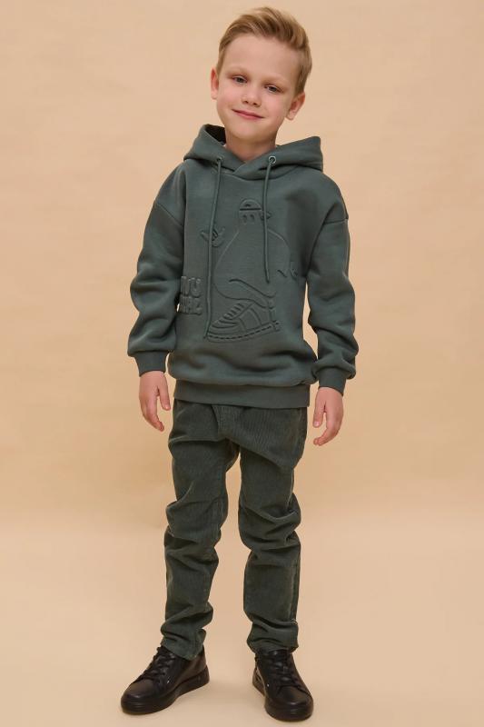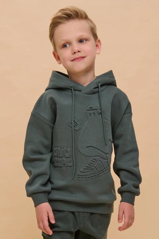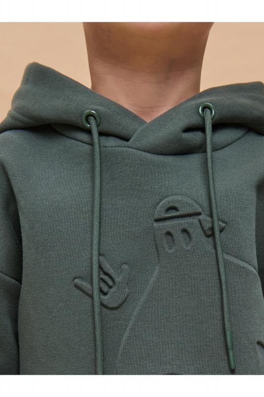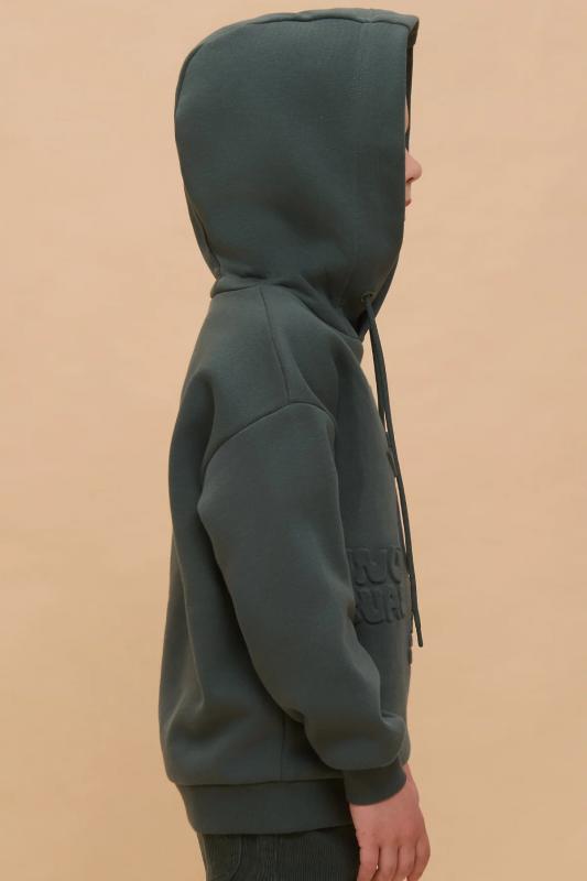 Толстовка для мальчика свободного фасона – актуальная вещь в любом сезоне. Уютное худи для мальчика с капюшоном незаменимо дома и на прогулке. Такая одежда поможет ребенку комфортно играть, гулять, ходить в садик, отдыхать на природе. Трикотажная толстовка для мальчика подростка с капюшоном выполнена с высоким содержанием хлопка и добавлением в состав эластана. Приятный к телу материал. Отлично носится, не дает усадки, не линяет в процессе стирки и сохраняет красивый внешний вид. Хлопок хорошо пропускает воздух, наделяет необходимой гигроскопичностью – ребенок активно двигается, играет, не потеет. Детское худи для мальчика из материала футер-петля. Изделие свободного кроя оверсайз со спущенным плечом, углубленной проймой. Рукава на манжете из рибаны. Низ выполнен в подгибку и прошит плоским швом. Капюшон на запахе, с люверсами и шнурками для регулировки. Изделие выполнено в однотонном зеленом цвете. Худи для мальчика подростка оверсайз спереди декорировано принтом: "