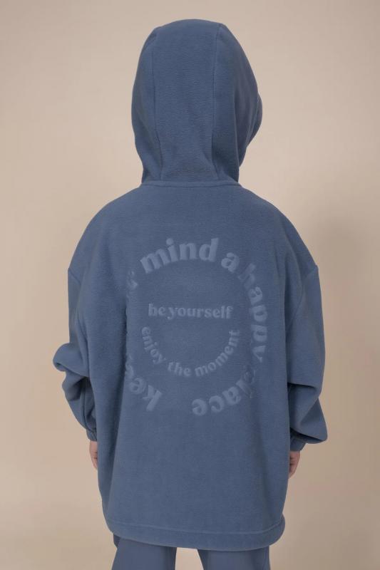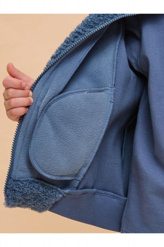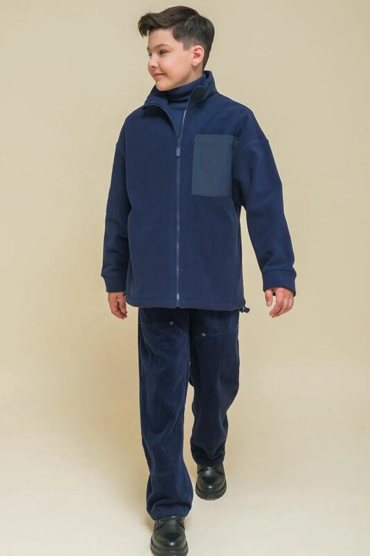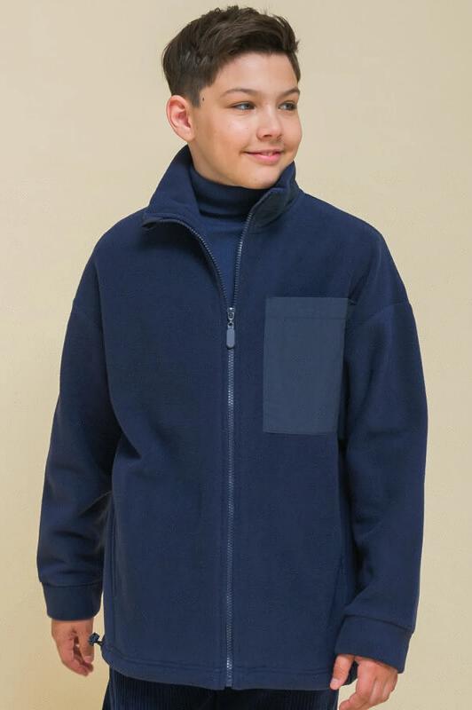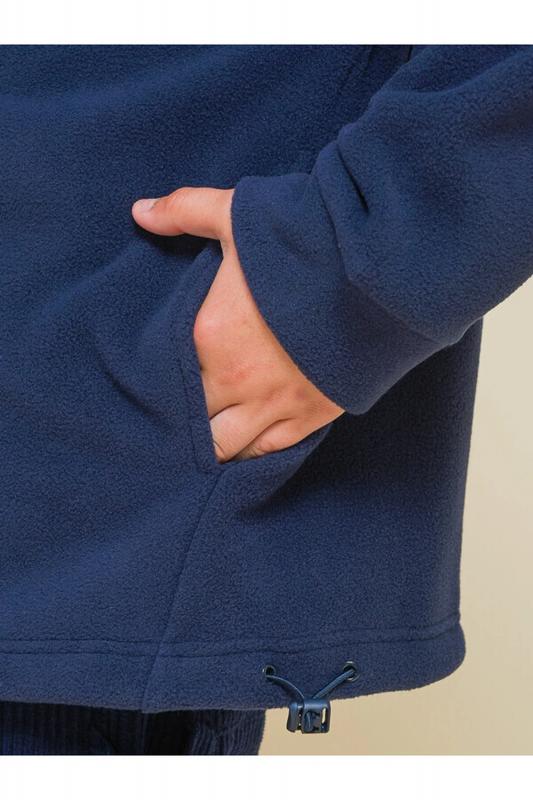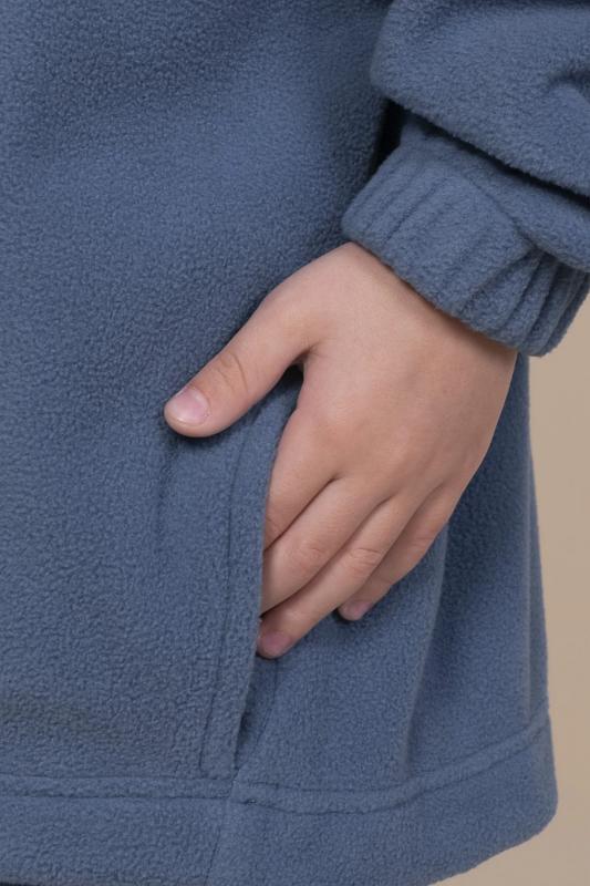 Оверсайз-толстовка на мальчика. Объёмный жакет со спущенным плечом подарит ребёнку комфорт и свободу движения. Застёжка на центральную молнию спереди. Толстовка на замке выполнена из флиса. Накладной карман на груди и декоративные детали — из гладкой курточной ткани. Сочетание материалов разных фактур — модный тренд сезона. По низу изделия предусмотрена утяжка для регулировки ширины. Толстовка с воротником-стойкой, который защищает шею от холода и ветра. Модель однотонная, без принта. Изделие неприхотливо в уходе. Одежда из флиса тёплая, лёгкая, мягкая, просто стирается и быстро сохнет, не выгорает и не скатывается, сохраняет первозданную форму в течение длительного времени. Зип-толстовка выполнена в актуальном синем цвете. Карманы в боковых швах - удобно пользоваться. В линейке представлены следующие размеры: 1 (86): 2 (92): 3 (98): 4 (104): 5 (110): 6 (116): 7 (122): 8 (128): 9 (134): 10 (140): 11 (146). Синяя толстовка подходит маленьким мальчикам, младшим школьникам и подросткам. Она идеальна для детског