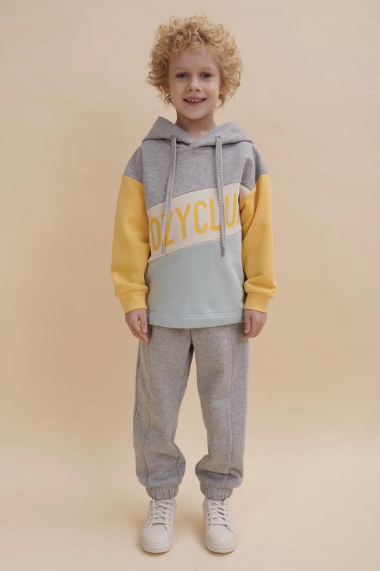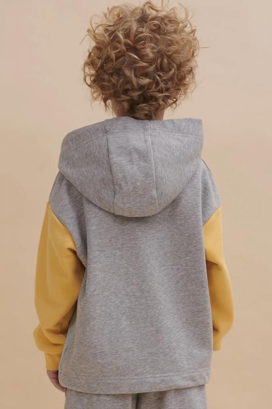 Толстовка для мальчика свободного фасона – актуальная вещь в любом сезоне. Уютное худи для мальчика с капюшоном незаменимо дома и на прогулке. Такая одежда поможет ребенку комфортно играть, гулять, ходить в садик, отдыхать на природе. Трикотажная толстовка для мальчика подростка с капюшоном выполнена с высоким содержанием хлопка и добавлением в состав эластана. Приятный к телу материал. Отлично носится, не дает усадки, не линяет в процессе стирки и сохраняет красивый внешний вид. Хлопок хорошо пропускает воздух, наделяет необходимой гигроскопичностью – ребенок активно двигается, играет, не потеет. Детское худи для мальчика пошито из материала футер-петля. Изделие свободного покроя оверсайз со спущенным плечом, углубленной проймой. Рукава на манжете из риба. Низ выполнен в подгибку и прошит плоским швом. Капюшон на запахе, с люверсами и шнурками для регулировки. Изделие выполнено в актуальном стиле колорблок в мягкой, нежной ретро-пастели. Худи для мальчика подростка оверсайз в сером цвете украшено по переду