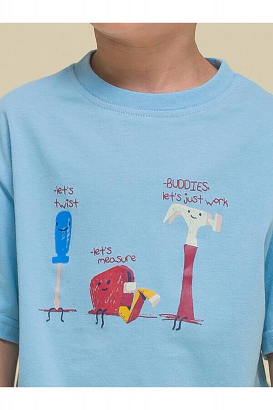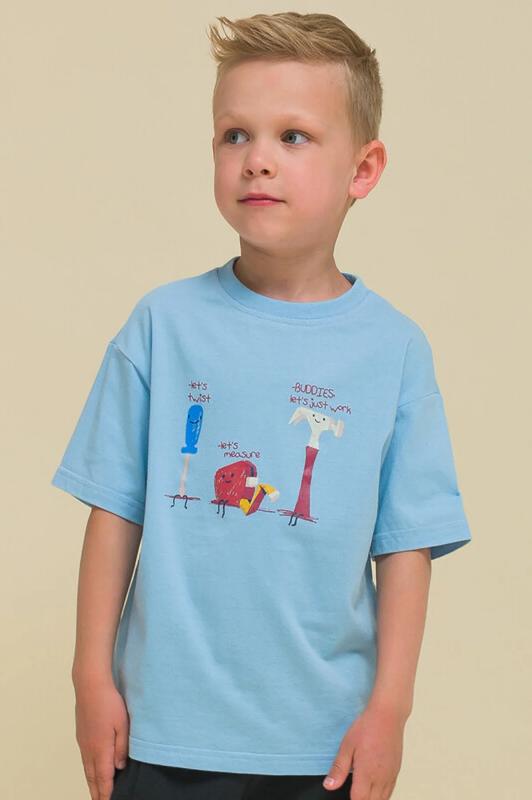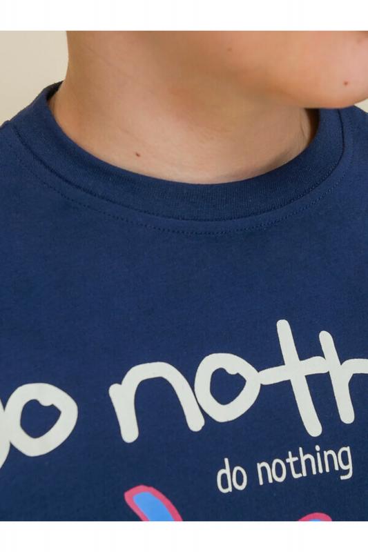 Стильная и уютная пижама в морском стиле для мальчика. В составе ткани 100% хлопка — идеально для детской одежды! Модель приятна на ощупь, прекрасно пропускает воздух, позволяя коже ребёнка дышать. При этом в пижаме из хлопка ребёнку будет тепло, даже если он сбросит одеяло. Всё это обеспечивает комфортный и качественный сон. Джемпер и брюки среднего объёма, плечо немного спущено, рукава широкие и свободные — пижама на мальчика очень удобна для сна. Широкие и мягкие резинки в поясе и по низу брюк не перекручиваются и не давят. Отделка горловины из эластичной рибаны — она не растягивается, ребёнку удобно надевать и снимать пижаму. Брюки однотонные, синего цвета. Джемпер в полоску украшает позитивный принт в виде парусника и солнышка. Надписи переводятся: "